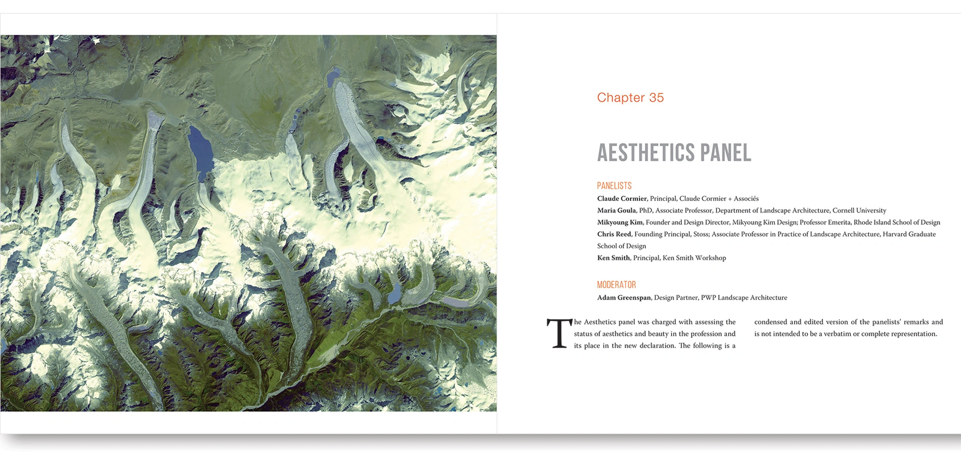 In preparation, LAF asked a diverse group of leading minds in contemporary landscape architecture to write their own "declarations," reflecting on the last half century and offering bold ideas for what the discipline should achieve in the future. These new declarations were presented at the summit. The following day, nine panels, curated by theme, responded to the declarations and engaged in lively debate about how to realize landscape architecture's potential and effect real-world change. LAF then synthesized the values, discussions, and ideas from the summit to create a new manifesto for landscape architecture.