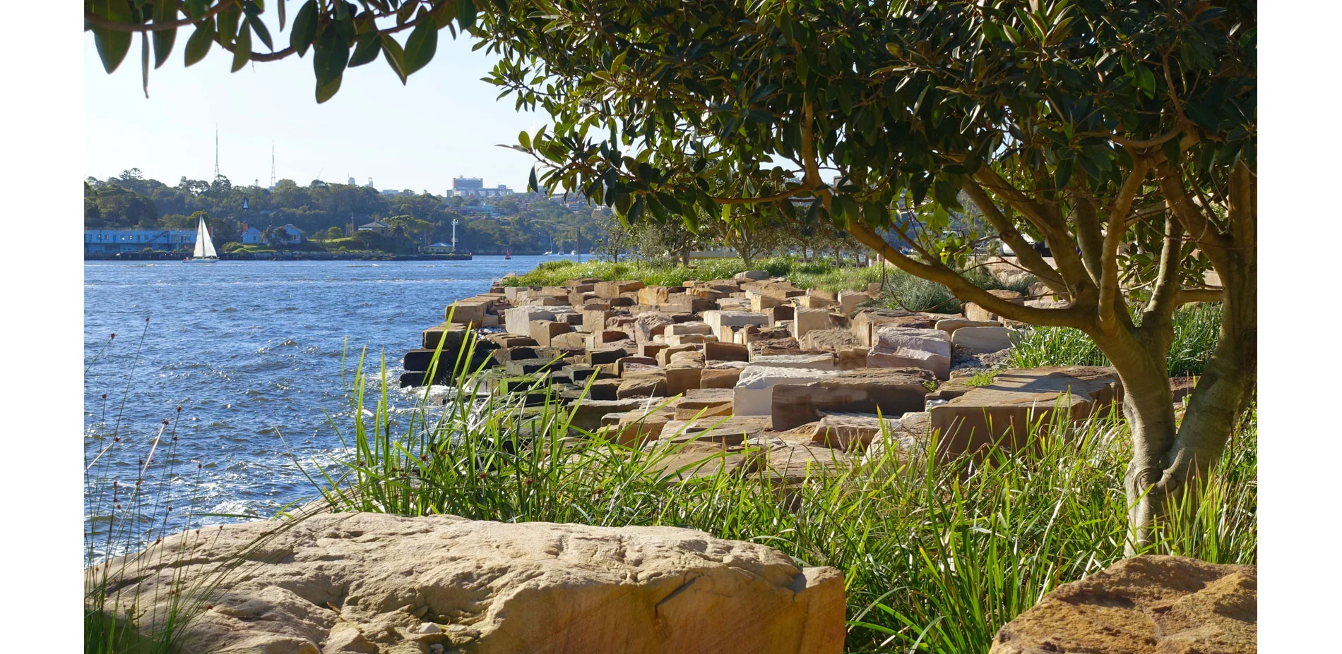 One purpose for reconstructing the headland was to reestablish the symbolic geography that reminds us of Sydney's long pre-European indigenous past. At the time of European settlement Goat Island was occupied and owned by Barangaroo and her husband, Bennelong. The island lay at the center of a concentric ring of other Aboriginal locales including what is now called Ballast Point, Balls Head, McMahons Point, Millers Point, and the eastern tip of Balmain. The physical re-creation offered by Barangaroo Reserve fulfills a goal adopted in 2005 by the Sydney Harbour Foreshore Authority as part of a larger plan to showcase Aboriginal culture.