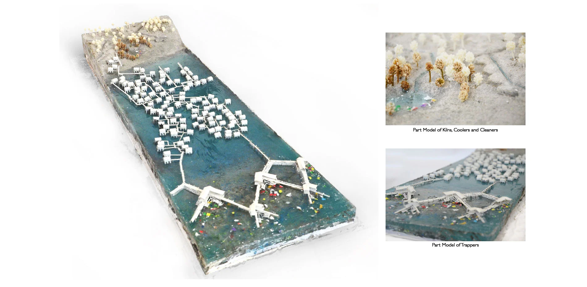 This conceptual plan envisions a landscape solution to the dire problem of ocean-borne plastic waste washing ashore in coastal communities in Southeast Asia. Three-quarters of all plastic waste polluting the world’s oceans originates in Asia, with large amounts of this Plastic Tide damaging remote kampong water villages, especially those built on shallows or beachfronts. The proposal suggests a clever, low-tech solution that allows these settlements to mimic industrial recycling facilities by “mining” the plastic waste that pollutes their communities and processing it into an economically viable form. This is an extraordinary example of environmental adaptation that redefines the meaning of landscape intervention and sensitively confronts an issue of growing importance around the world.