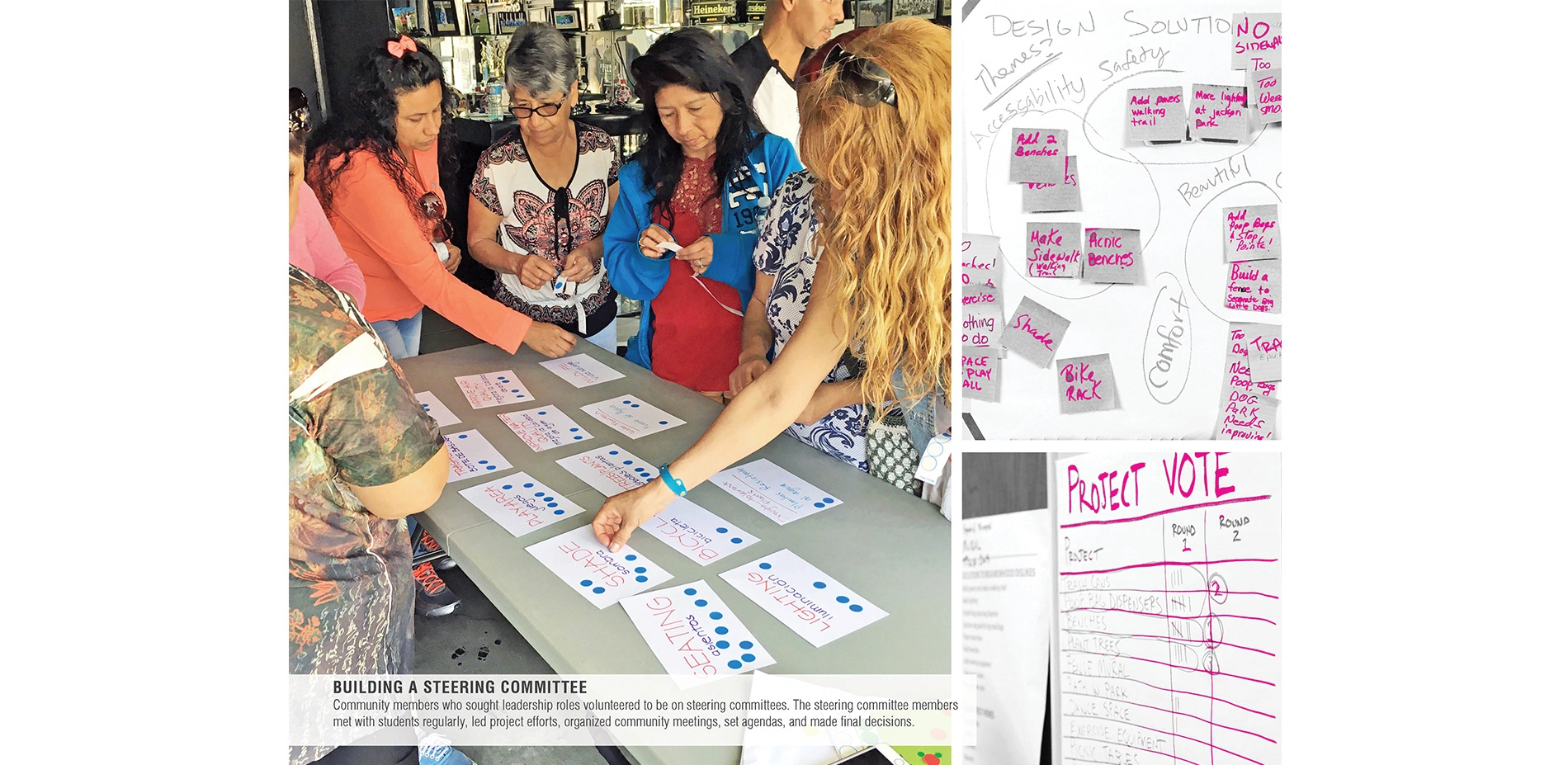 After neighborhood selection, all work on the projects involved participatory design-build methods such as canvassing, interviews, site walks, community meetings, steering committee meetings, focus groups, and community build days. The goals of the projects were to use a short-term community-driven design-build project to create buy-in for the design and planning of 3 to 6 larger scale projects with simple programs and short timelines to construction (3 to 18 months with budgets of $50,000 to $1 million). The design-build projects focused on improvements that started with local residents and their priorities for improving their neighborhood.