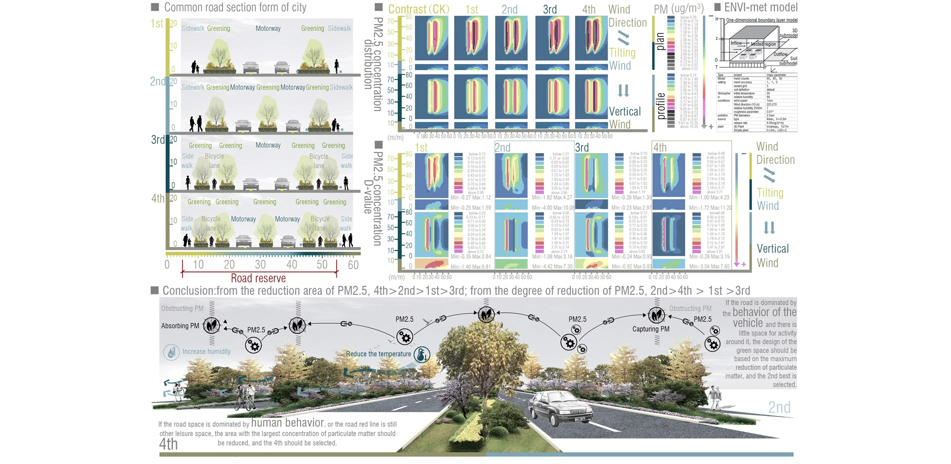 2. Plants also have a barrier effect on the spread of air particles. We analyzed the airborne particulate pollution sources in Wuhan and found that the main source of pollution was automobile exhaust from the streets. Therefore, CFD and ENVI-met software were used to simulate the urban street environment, and found that the trees in the street have the effect on weakening the urban wind and indirectly blocking the diffusion of air particles. There is a positive correlation between the number of trees in the street and its barrier to particulate matter. Therefore, the concentration of airborne particulate matter in urban residential areas is particularly close to the green space of the street.