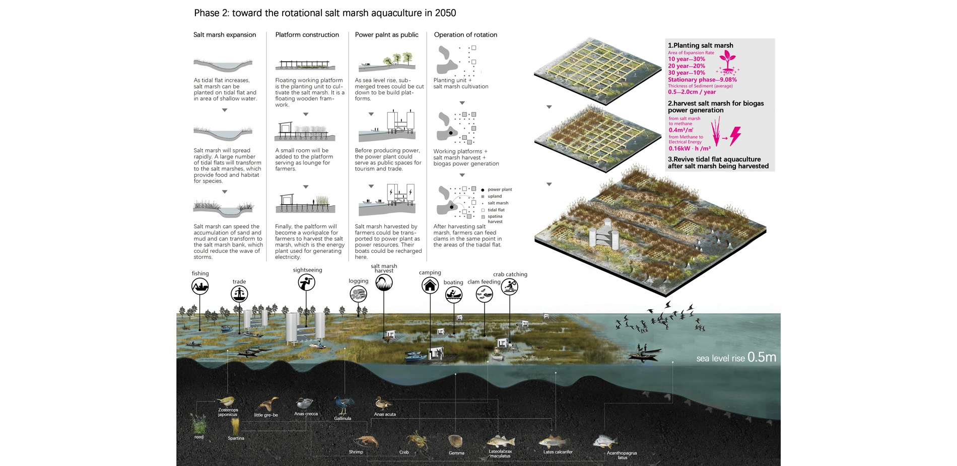 - phase 2: toward the rotational salt marsh aquaculture in 2050 when sea level rise by 0.5m;