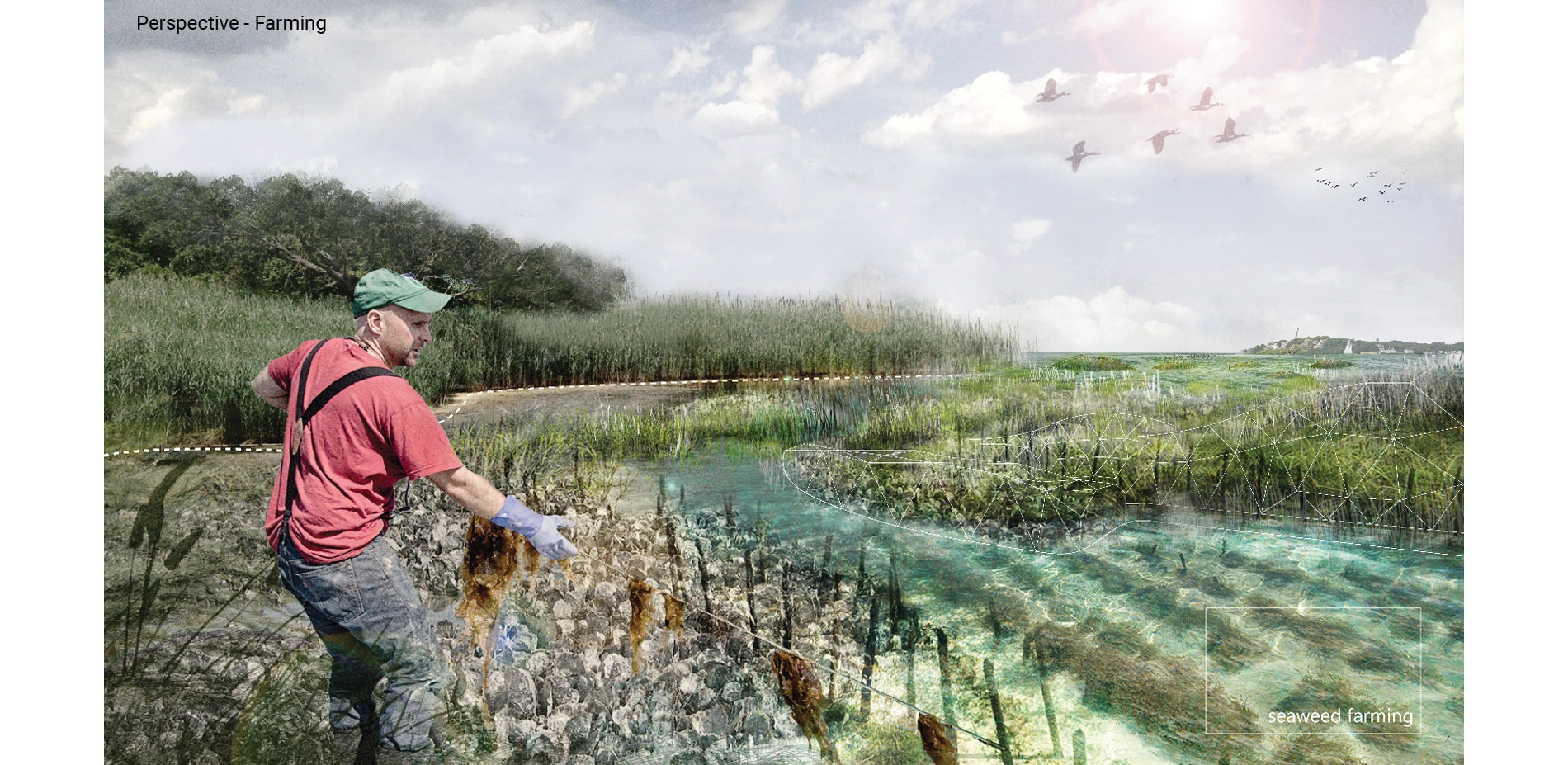 Seagrasses provide many essential services to people as well, but many seagrass meadows have been lost because of human activities. The new habitats are composed of grassy berm colonies that propagate the growth of seagrasses, which provide shelter and food to a diverse community of animals. Productive landscape as seaweed farming, at the same time, can be implemented next to the berms in order to associate with the culture of immigrant fishers in the 1900s, and provide locals with organic food resources.