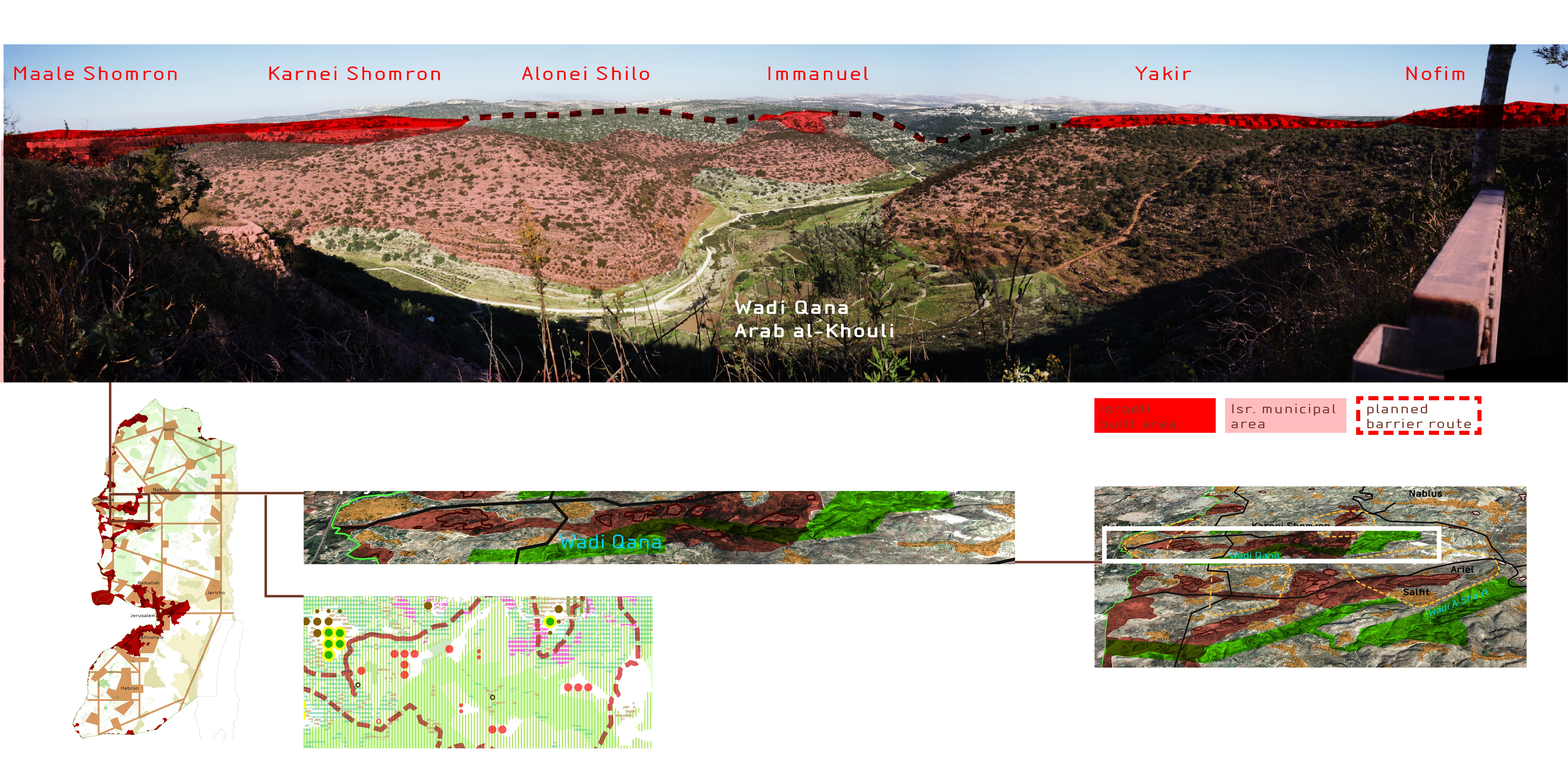The research combines unique inter-disciplinary data, some of it made publicly accessible for the first time, especially at this level of detail. In addition, important layers of data have been assembled specifically for this project. For example, all Palestinian localities were re-mapped. It involved a tailor-made re-definition of aggregation and delineation functions of buildup areas, due the integrative rural-urban characteristics of the region. The gradual change of density from city-centre to small farms and Bedouin camps, required decisions on the delineation of edges and continuities of buildup polygons. This is extremely controversial because each side of the conflict wishes to show as much spatial continuity as possible. The research and data collection combined hi-res aerials analysis together with regular field trips, as the area constantly changes. Many developments are "under the radar" of public planning permits and publications. More than once our own data collection "discovered" new developments not previously known to government offices or ngos.