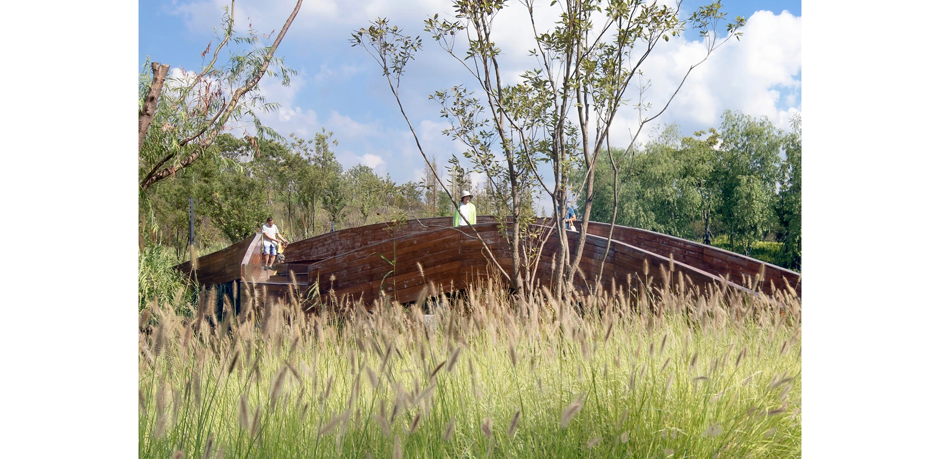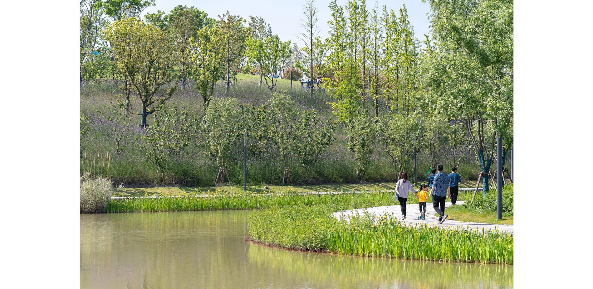 Taopu Central Park breaks the mold for many parks in China. Land bridges and tunnels allow for needed road infrastructure while still creating a large continuous park, which prioritizes pedestrian safety, strengthens neighborhood connections, and creates habitat and wildlife corridors. The result is a dramatic and sizeable 237-acre park that redefines the city’s relationship to water, provides a sense of big nature within a dense urban context, and supports 21st-century metropolitan life with spaces for habitat, water, events, and display. -