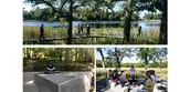 A combination of woodlands and wetlands make up 22 acres at the edge of Minnesota’s Lake Marion, where the designers employed a light touch and creative reuse of materials to define a mile-long network of pathways through the landscape. Invasive species were removed, though not entirely: their materials were incorporated into art installations around the site. Reclaimed ash makes up wetland boardwalks, and elsewhere, the narrow, linear concrete paths define transitions between ecological zones, with broader path intersections forming gathering spaces—a floating hammock garden, a fire pit, and a Zen meditation garden, among others—along the trails, allowing more communal appreciation of the restored natural surroundings.