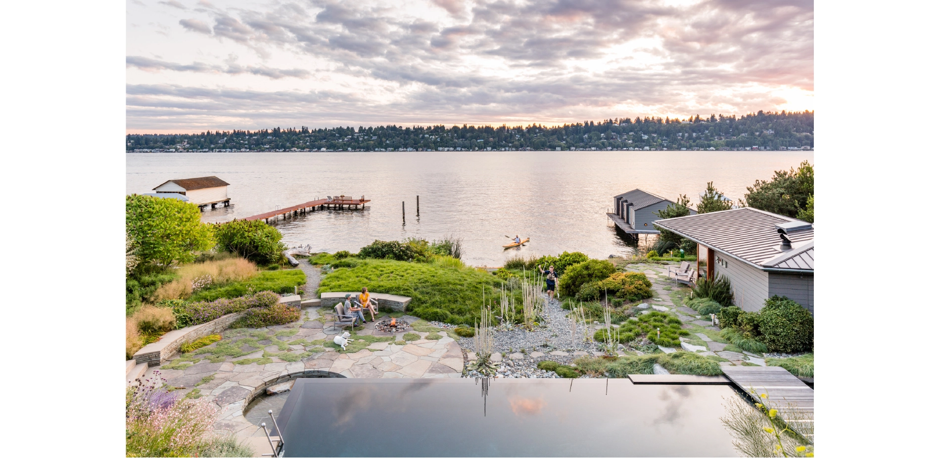 Along the edge of Seattle’s Lake Washington, where once a nondescript concrete bulkhead met the water, a carefully crafted pebble beach now generates biodiversity within a living shoreline. A wholesale rethinking of an unceremonious lawn begat a topographic upheaval, allowing undulating meadows of native plants to form foreground, middle, and background within the landscape, with breaks for a pool and a beach house. The re-planting of native species within a previously managed terrain—and the elimination of the run-off chemicals that kept it green—have contributed to an overall re-wilding that welcomes insects and wildlife, and has cemented this project as a pilot study for the EPA’s Green Shores for Homes initiative.