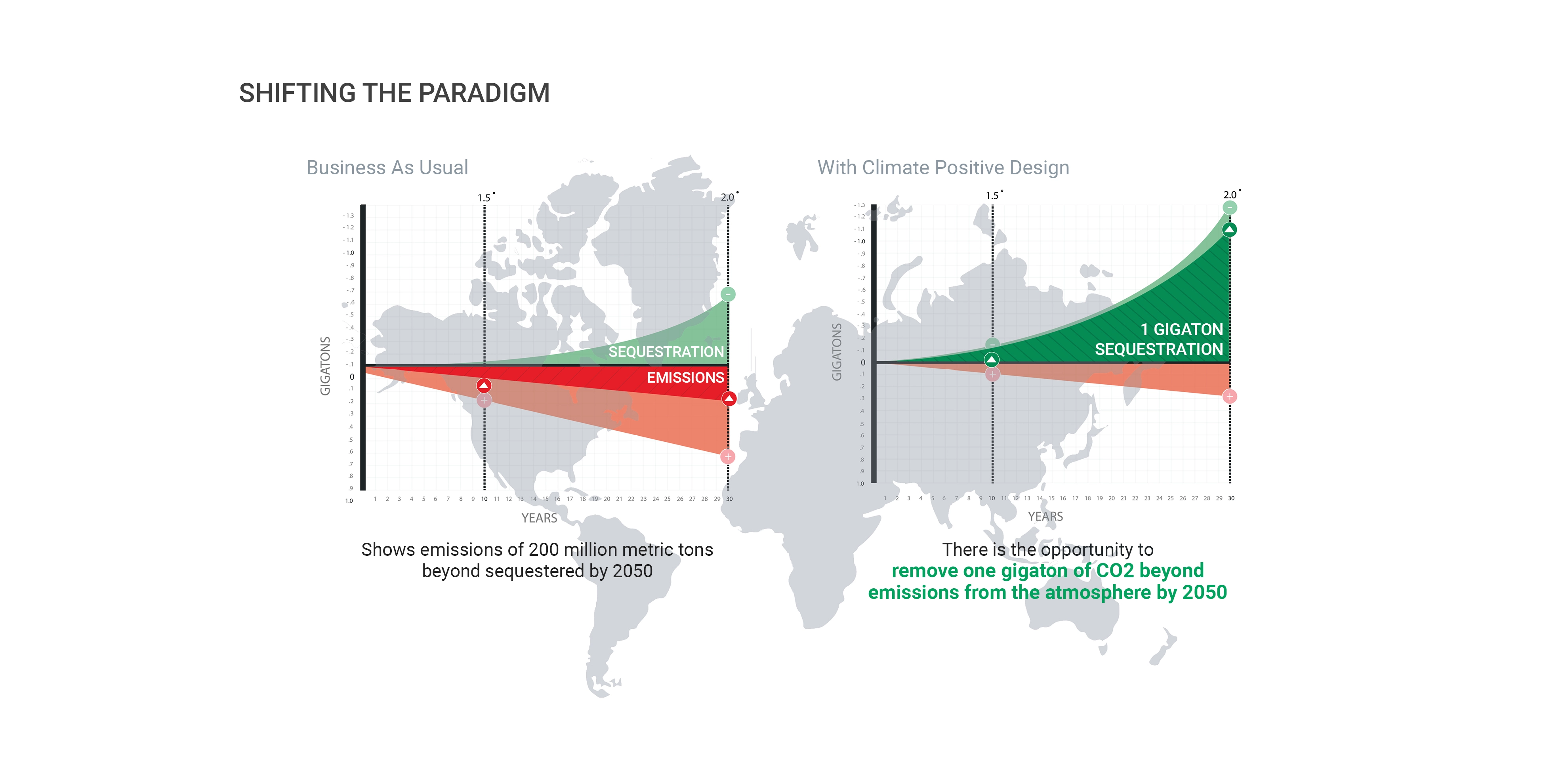 Through the use of the Pathfinder, designers can meet the goals of the Climate Positive Design Challenge by reducing carbon emissions and increasing sequestration.
