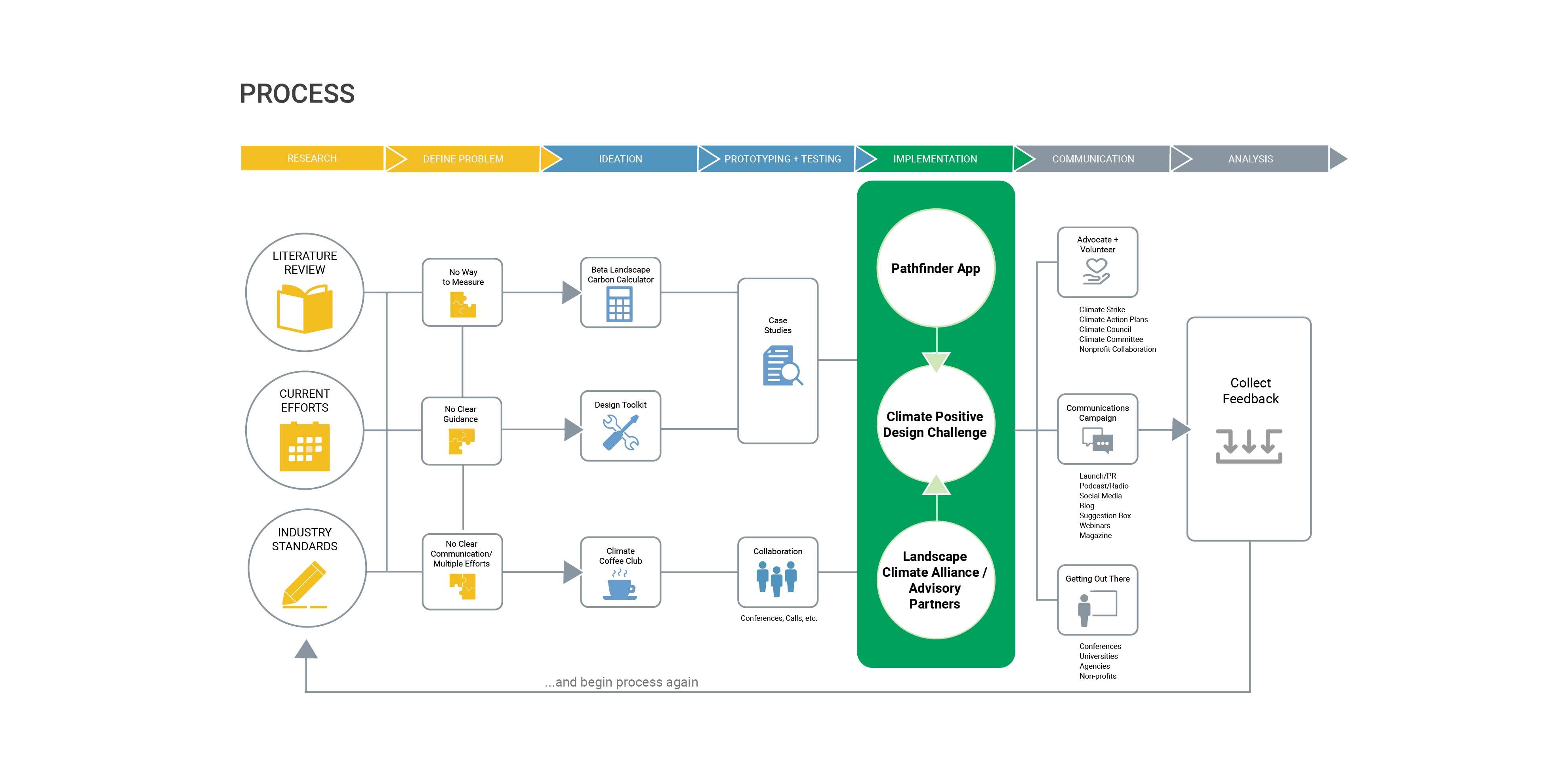 After evaluating the climate action progress of other disciplines and organizations, understanding performance metrics strategies and engaging the profession at large, Climate Positive Design was created. The website houses a range of tools, guidance and resources, including a Design Toolkit that outlines over 80 different strategies for improving carbon impacts of landscape projects.