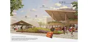 Vehicular roads are minimized and a network of pedestrian paths and communal meeting areas connect these new residential areas with the existing informal settlements, to the main activity corridor, and extend to the large eco-agro park. Similarly, to the east of the central green swath new predominantly residential middle-income neighborhoods create an amicable and porous edge, and when possible connect to the existing gated communities further east. Schools, commercial facilities, and other amenities anchor these residential areas to the traversal civic corridors.