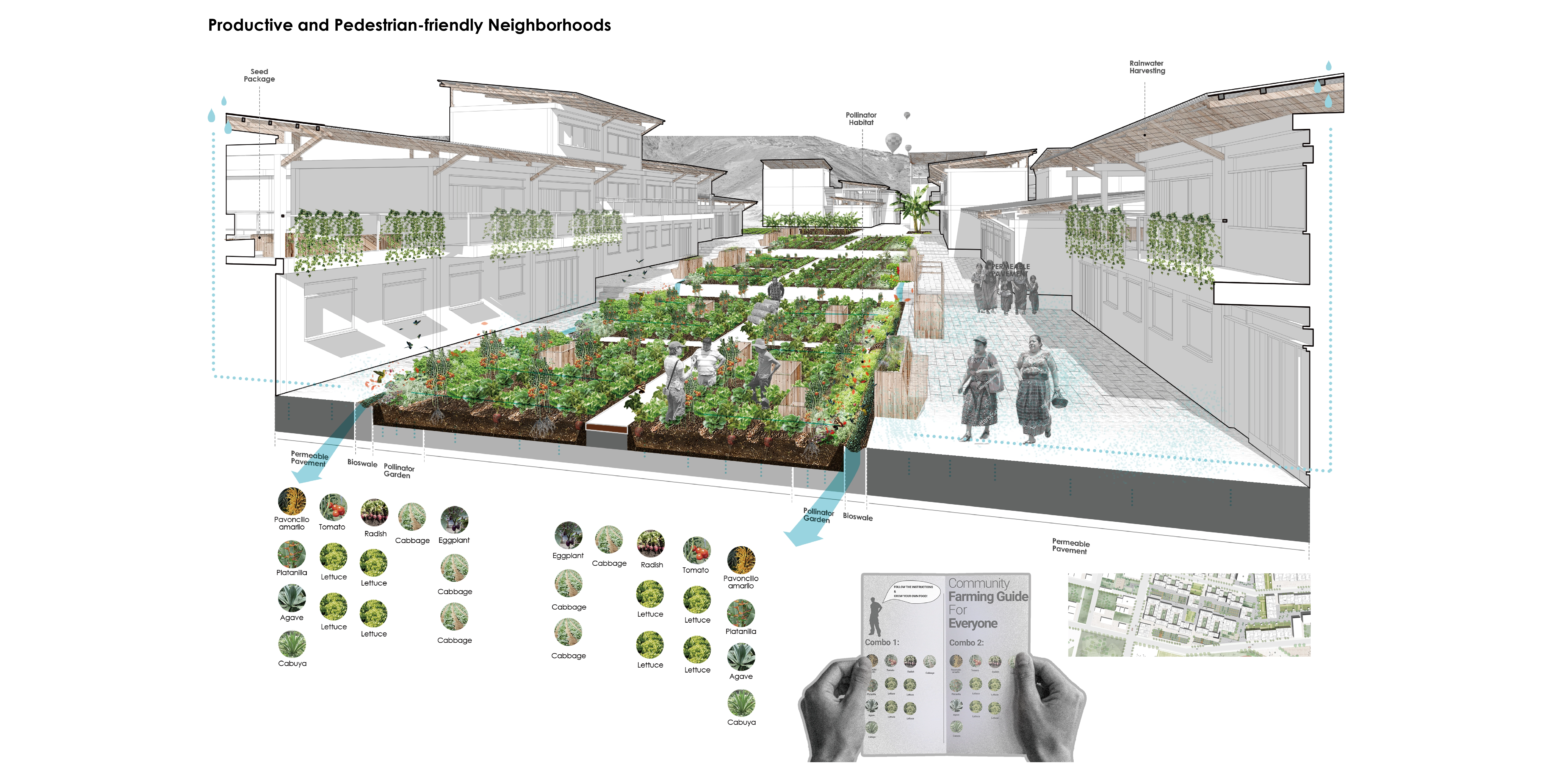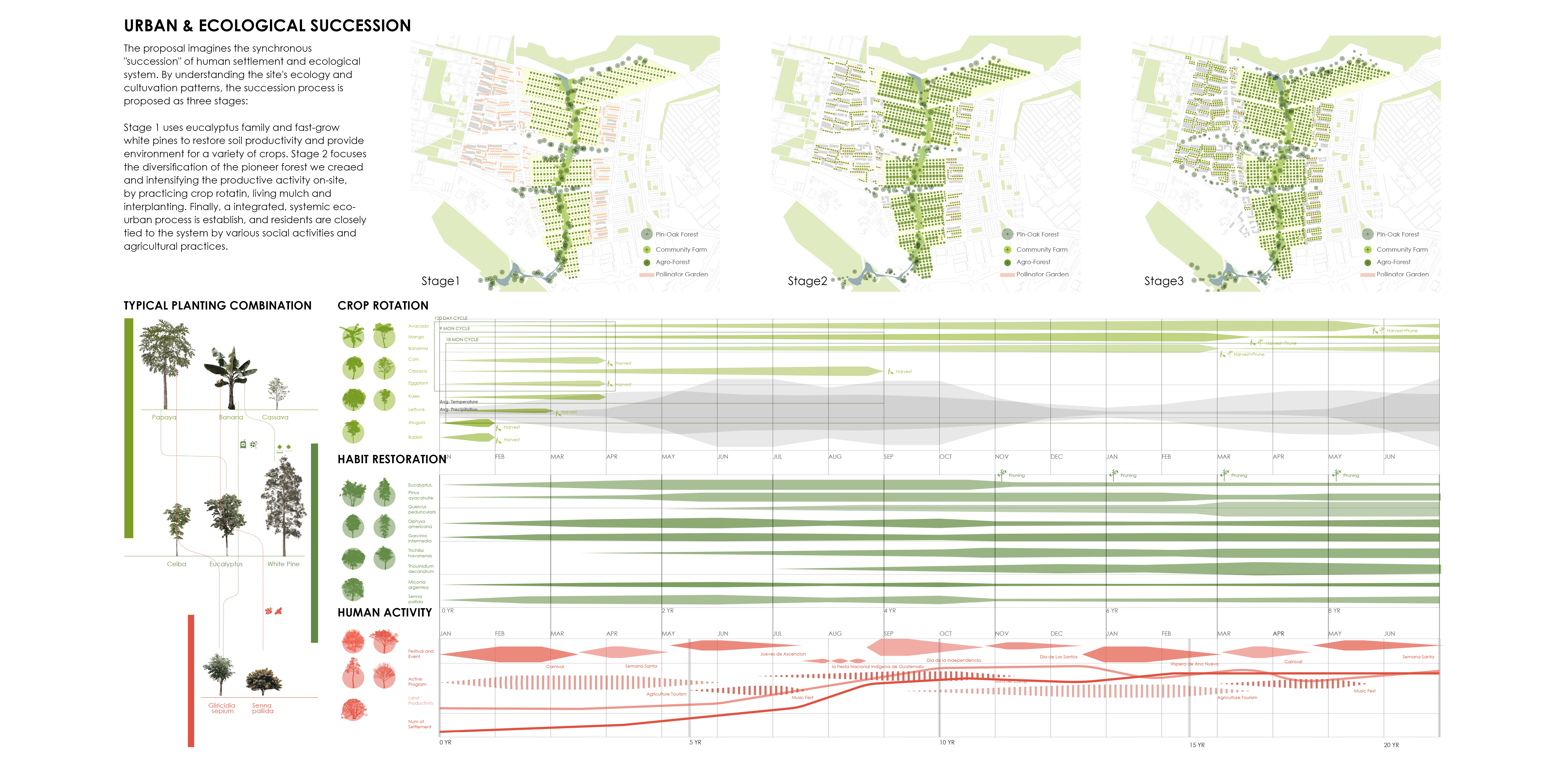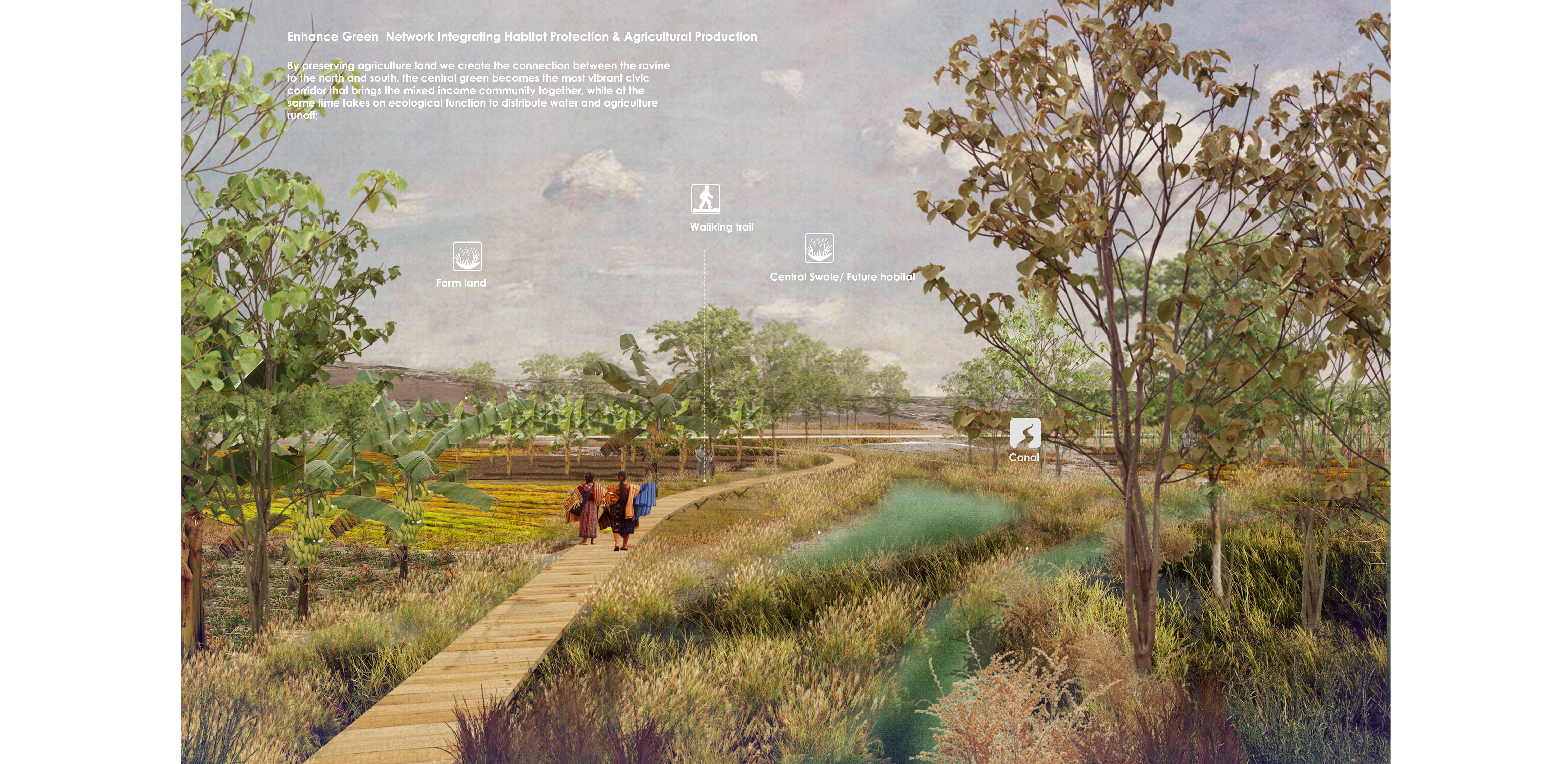 The strategy coupled with the ecological succession proposal can be further applied to other communities in Guatemala. The municipality of Villa Nueva can collaborate with local educational institutions, World Food Programme and communities to retrofit the unique agricultural landscape while addressing ecological aspects, also serve as the morphological and performative framework for the urban design of the district. -