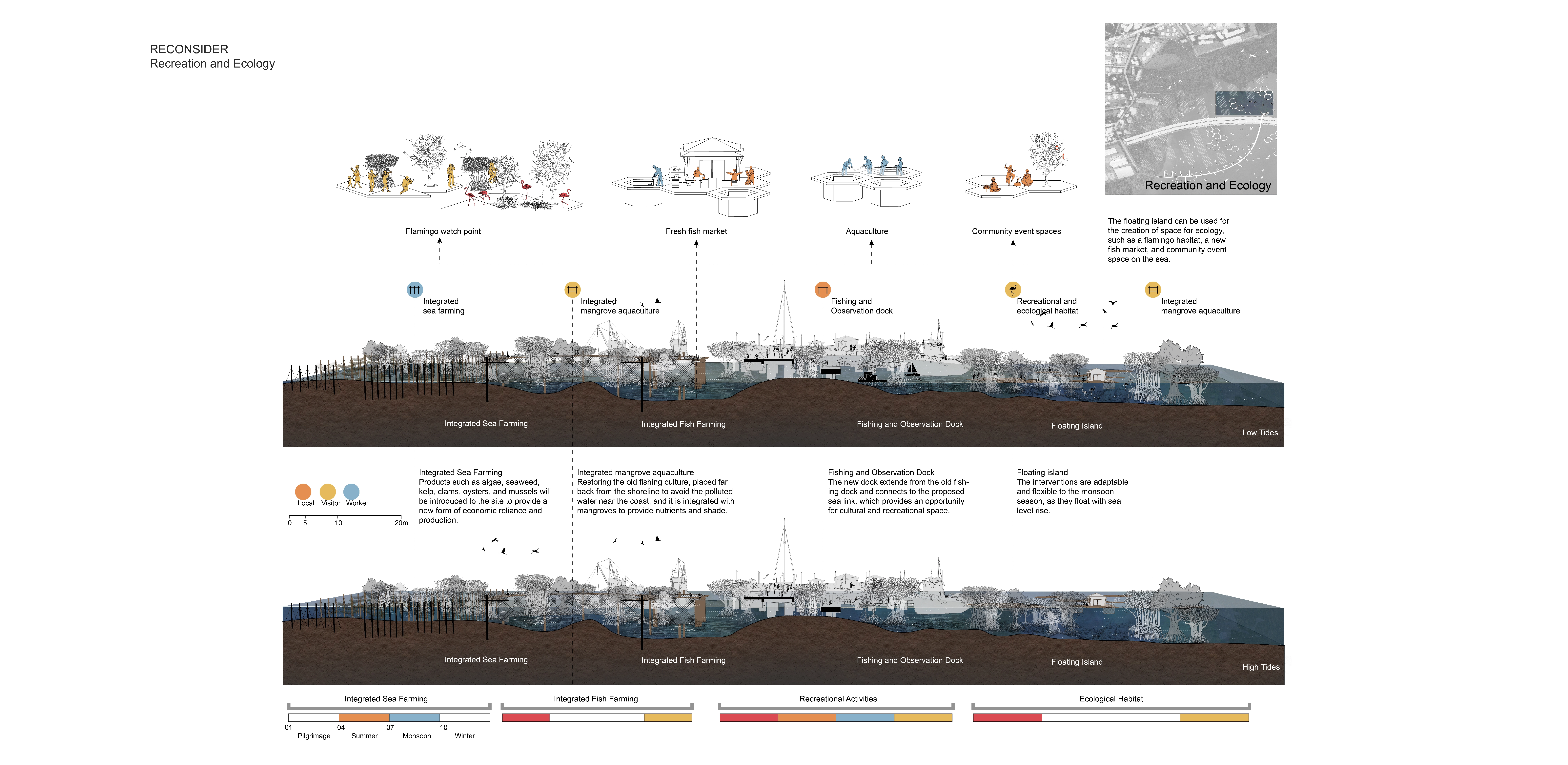 This project explores a way to study a site through documenting, recognizing, reconsidering, and highlighting the adaptive process. It respects local cultures and ways of living while learning from generations of intimate knowledge of the sea. This design is not a master plan that instructs the locals on what is going to happen; instead, it demonstrates potential opportunities for the locals to improve their quality of life while respecting their culture. -