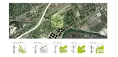 The Delray Carbon Forest has the power to offer a unique Detroit experience. The master plan’s river ramble, bridge underpasses, and observation points provide stunning views where land uses merge harmoniously and exotically—the sight of people tending the forest against a backdrop of wetland birds soaring by smoke stacks. In a nod to its working-community heritage, Delray’s challenges become its assets—instead of an industry of cars and factory labor, Delray can offer Detroit an economy of land stewardship and carbon harvest. -