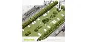 • Phase 1 – The master plan establishes hedgerows along the major transit corridors (including railway) first. This allows Detroit the “biggest intervention bang for the buck” while immediately providing inhabitants pedestrian and bike amenities nestled within the protective hedgerows. The corridors also strategically connect Delray to pre-existing, healthy civic assets surrounding the neighborhoods, such as nearby Clark Park and several public schools. Phytoremediation begins for a pilot housing program sited northeast, away from the customs plaza and major industrial polluters.