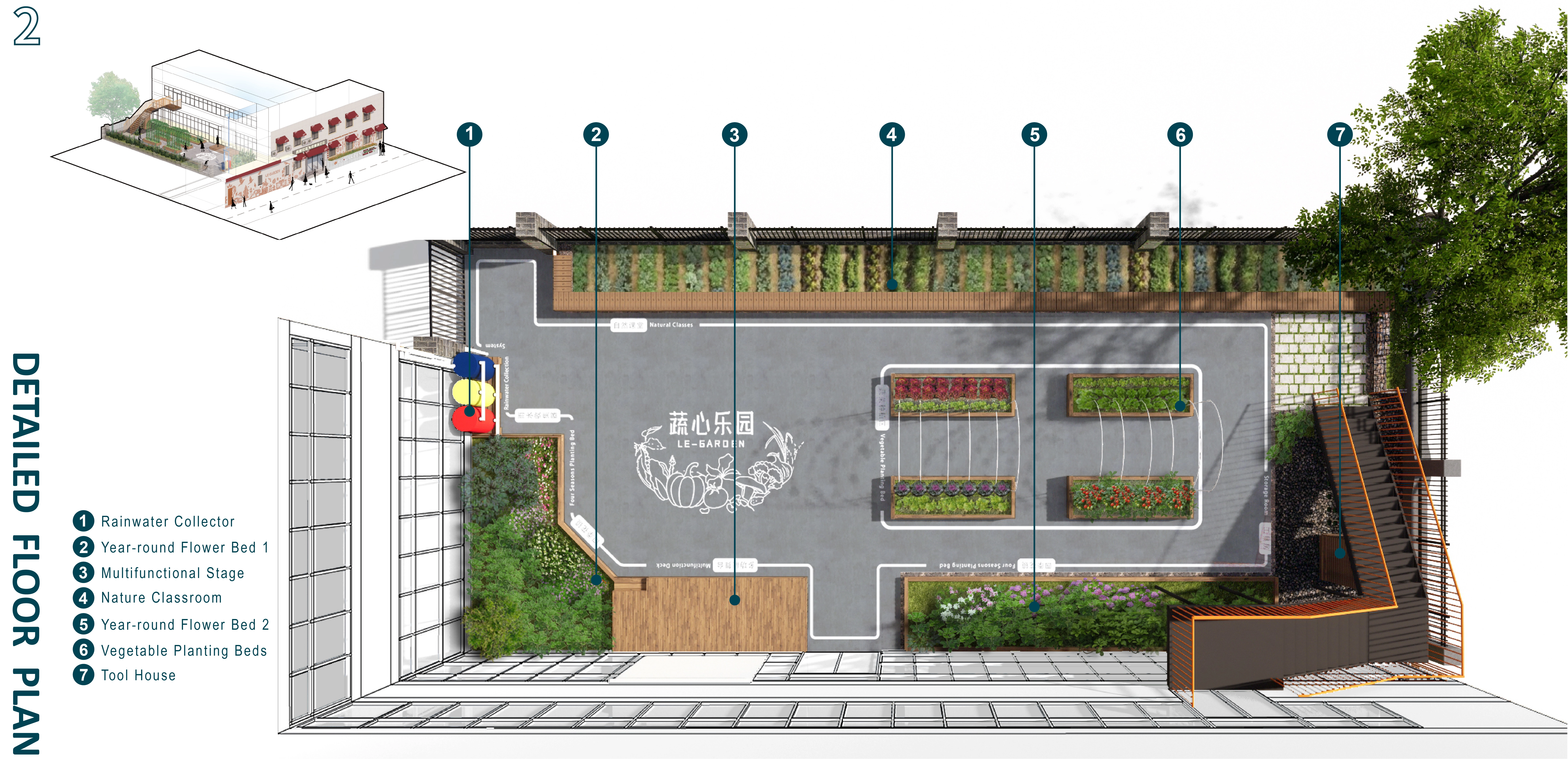 As China is rapidly entering into an aging society, the traditional home-based care model is facing huge challenges. There is a growing need for better designed community programs to serve the seniors and their families within the environment they live. This project Le Garden, aims at creating a healthy and comfortable outdoor space to accommodate interactive, recreational, and educational activities for seniors, to strengthen the bonds between seniors and their families, and to revitalize the social network within and outside of the community.