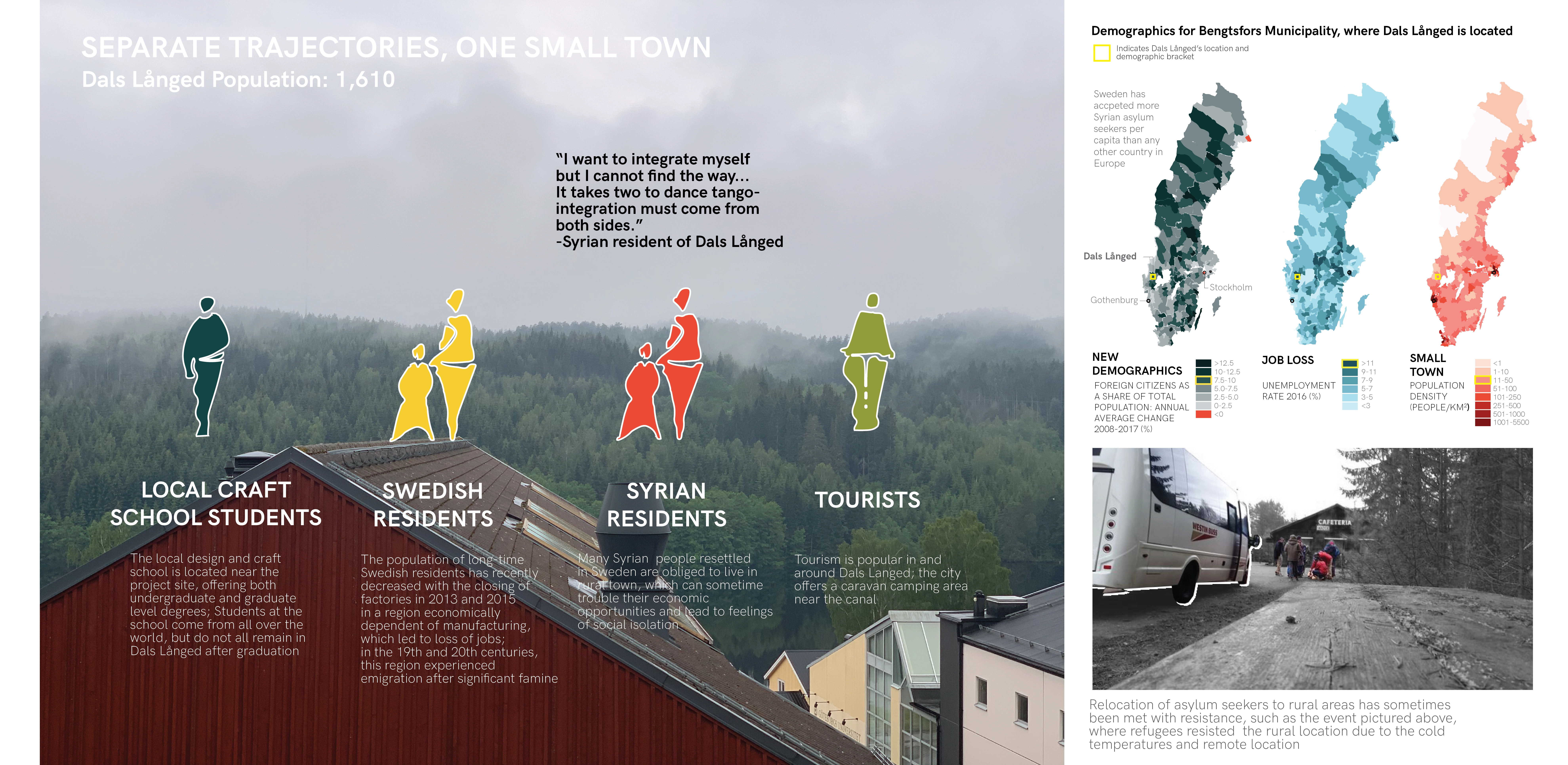 A continuing evaluation of our project found shared aspirations among Syrian newcomers in the cultivation of new, diverse social networks and the importance of safe places to learn the Swedish language and meet non-Syrian friends. Both are requisites for integration and cultivation of a “home”, but remain entangled in social, cultural, and economic challenges. This impact of human movement is both unique to Dals Långed and part of a growing global narrative resulting in increasing rates of displacement and urban migration. There is a great need for novel public spaces and inclusive processes to cultivate them.
