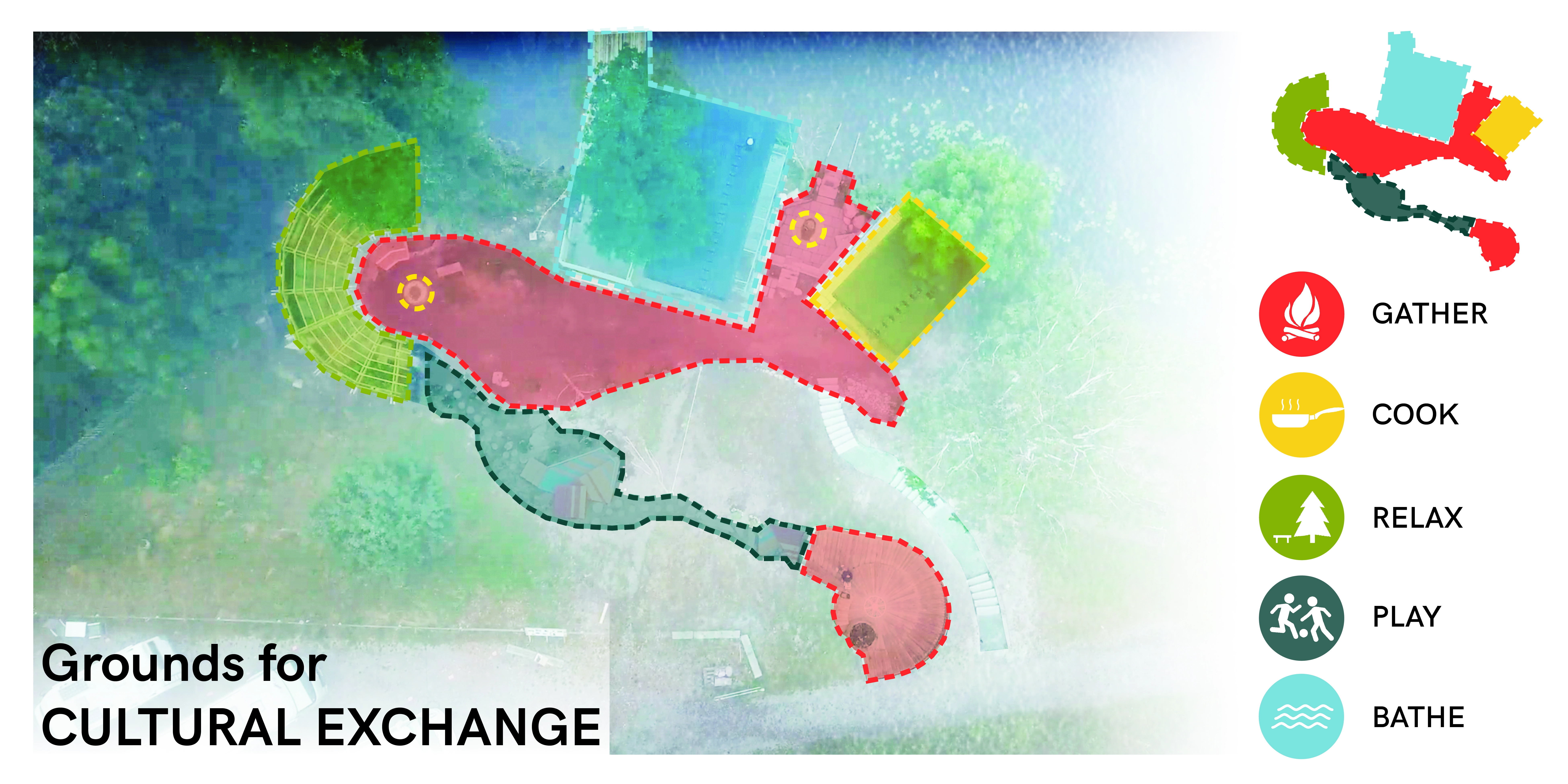 For students, the project was an invaluable experience in cultivating long-term trust, building relationships with a community, and continually evaluating our effects over time. It highlights the immense impact simple design decisions can have on the success of a project. Initially we provided shared access to the lake through a courtyard garden between the sauna and cooking pavilion. However, the sauna is traditionally done nude, and sauna users would access the lake while Syrian families were cooking in the courtyard, resulting in uneasiness and discomfort for all parties involved. This clear oversight was addressed in the second phase. We created a screened circulation path accessing the lake behind the sauna. A phased design approach enabled cohorts of students to learn from each other and address past decisions as more feedback was gathered. More importantly, it allowed the community to shape the place as they began to use it. We continue to see this, as they bring their own furniture and rearrange it to meet their needs.