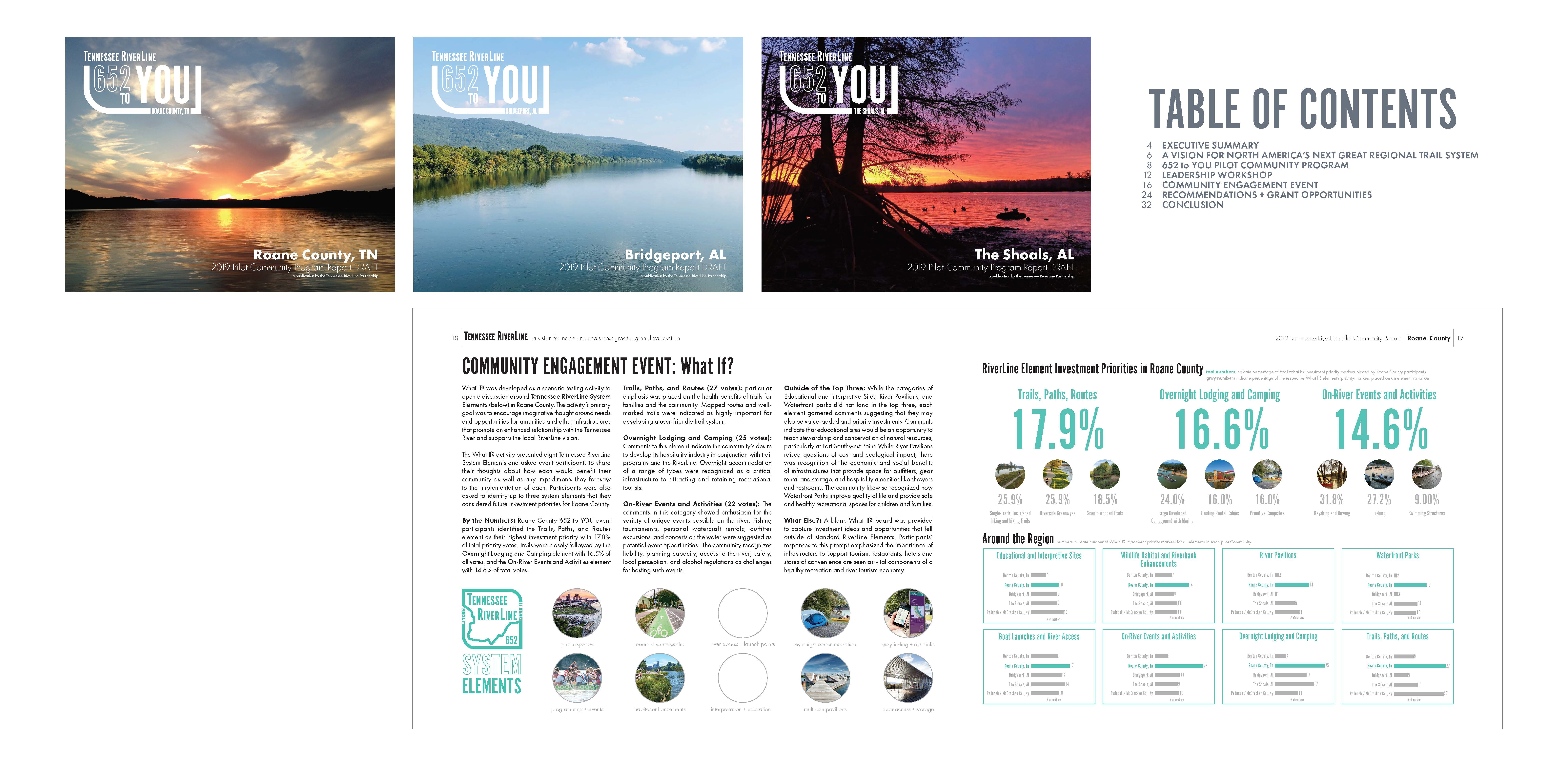 Its success is more completely demonstrated by the robust dialogue and diverse community it has built around the future of the Tennessee River, the insights it has revealed that will shape local and regional efforts moving forward, and the momentum it has established that accelerates the Tennessee RiverLine vision toward implementation. -