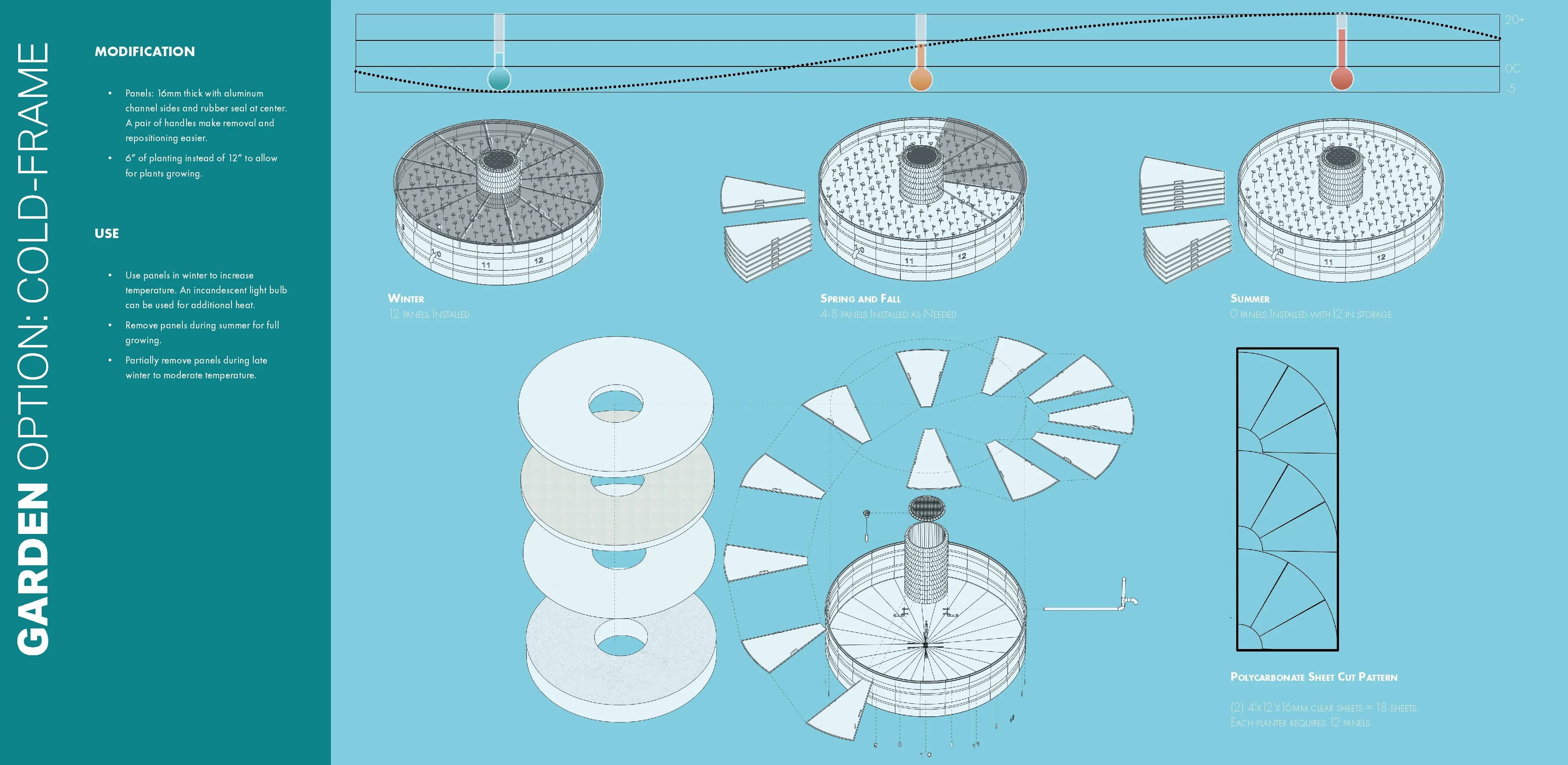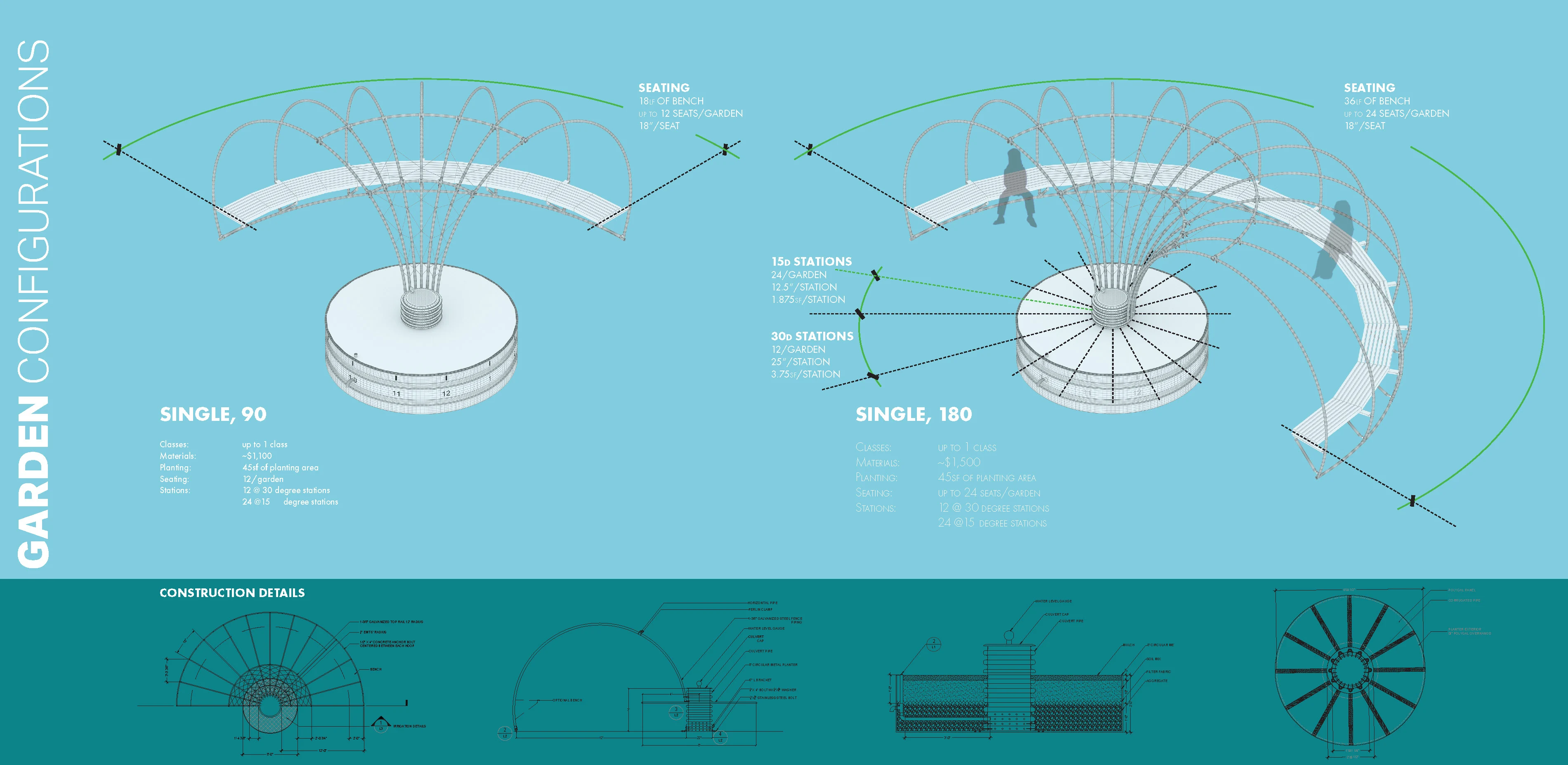 With going online for COVID 19, the team focused on documenting the typology so that it can be shared with any school looking to create a dynamic learning garden. The team developed construction drawings, diagrams, material lists, and a brochure so that will eventually be hosted on an extension website for download.