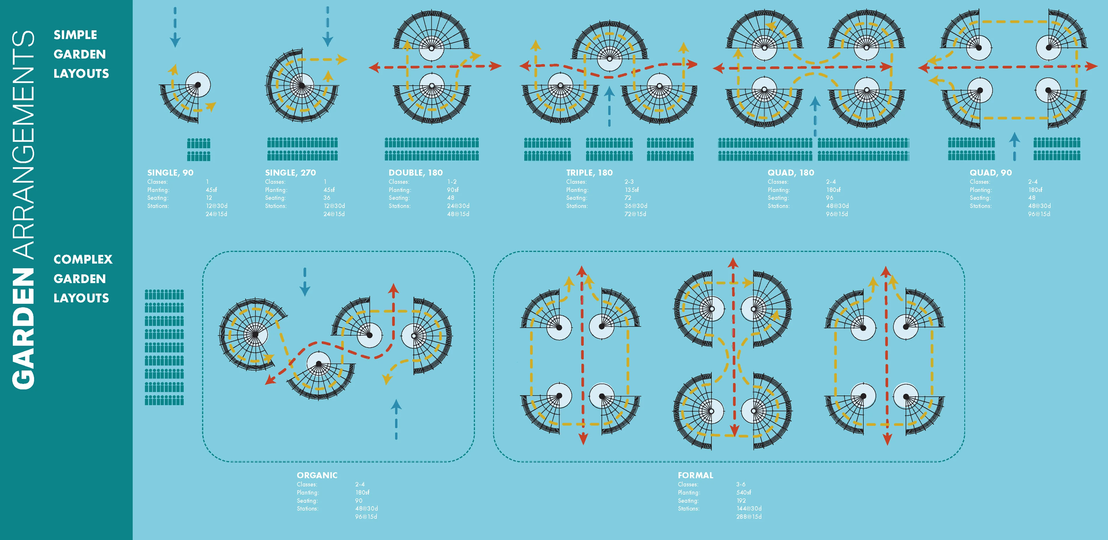 Instead of simple ticks and numbers to delineate teaching stations, the team developed a complex lesson plans built on the same 12 station organization. Working with an educator, the team developed five, unique themes that offer lesson plans on time, color, math, biology, and seasons. These themes allow for teachers to use the garden for almost every subject and ensure that the gardens will be used for not just food education, but as an integral part of the classroom.