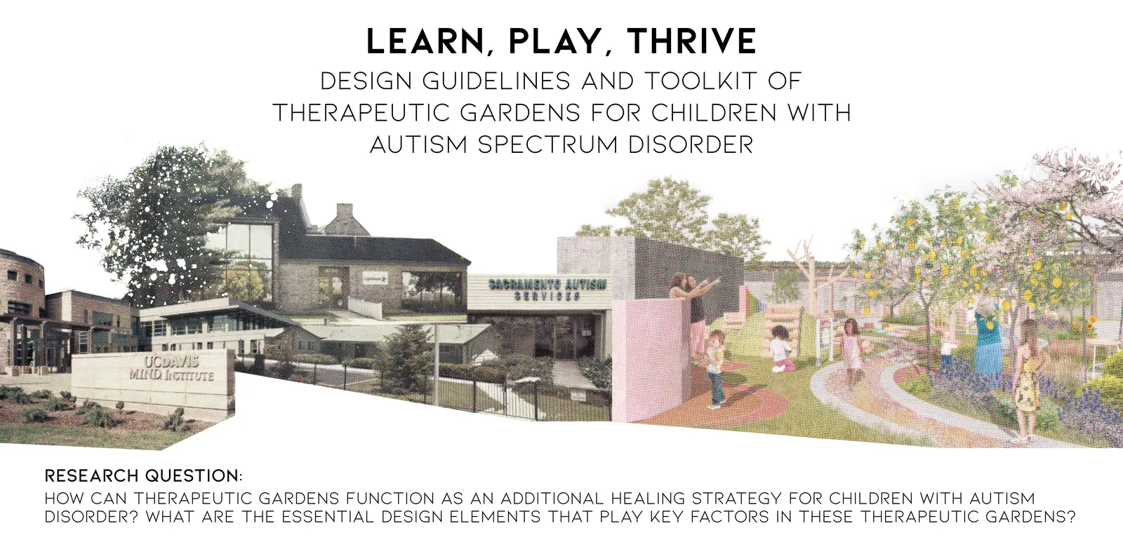 This research project focuses on establishing an effective guideline or toolkit for landscape architects to design therapeutic gardens essential for autism and special education communities. The study investigates and identifies crucial design elements for a therapeutic garden through case studies of pre-existing sites, interviews with their staff and educators. Furthermore, literary reviews of academic articles highlighting the effectiveness of therapeutic gardens, supporting psychological theories, and examples of key elements had also been thoroughly reviewed.
