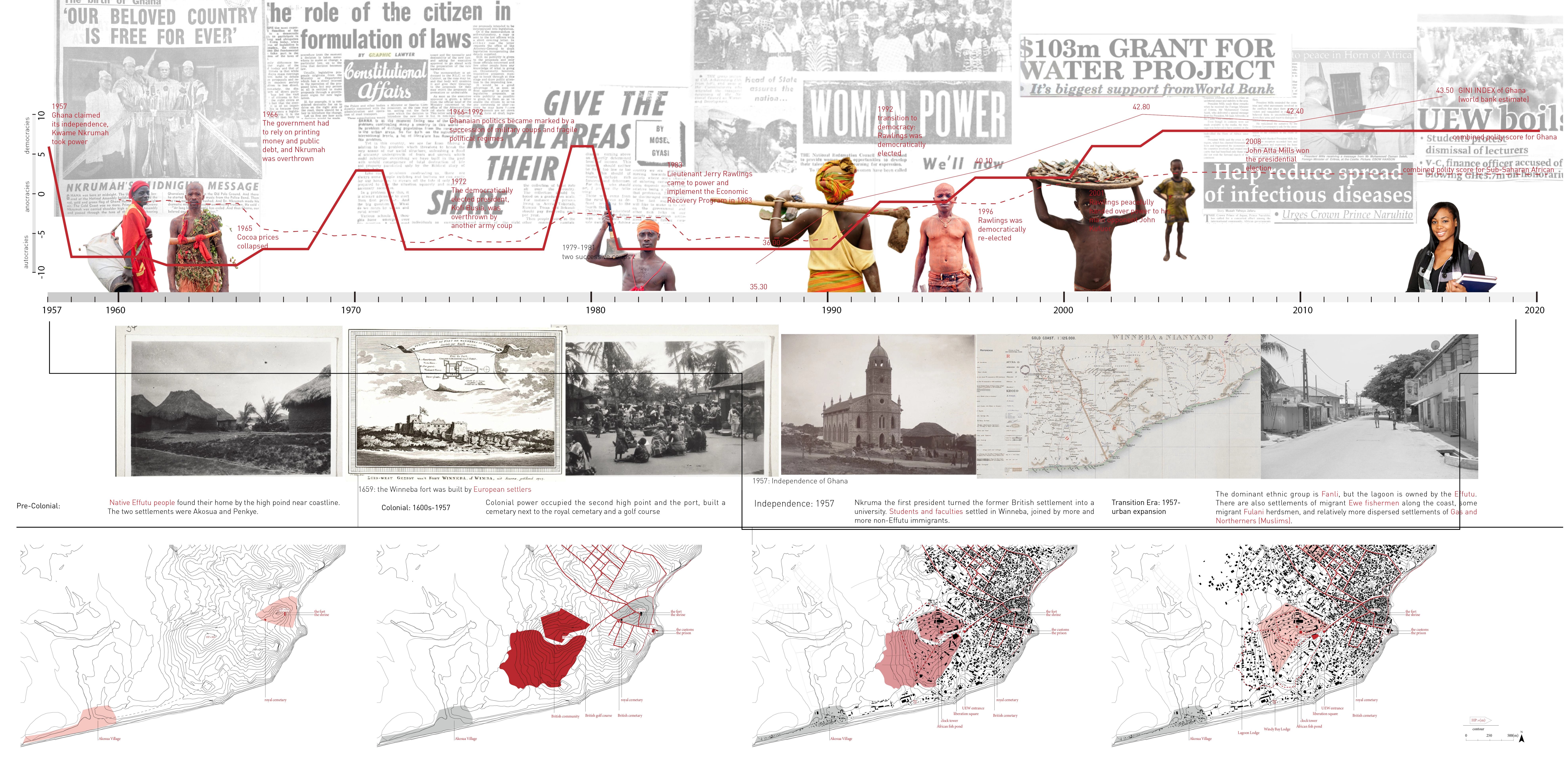 The city of Winneba is located on the Gulf of Guinea in Ghana’s Central Region. Residents have relied on artisan fishing as their main livelihood for hundreds of years. As it expands from a small fishing community to a college town in the 1960s, then to a satellite town of the capital, indigenous Effutu people are joined by migrants from diverse backgrounds. Today, Winneba is a rapidly growing city with a population of 60,000.