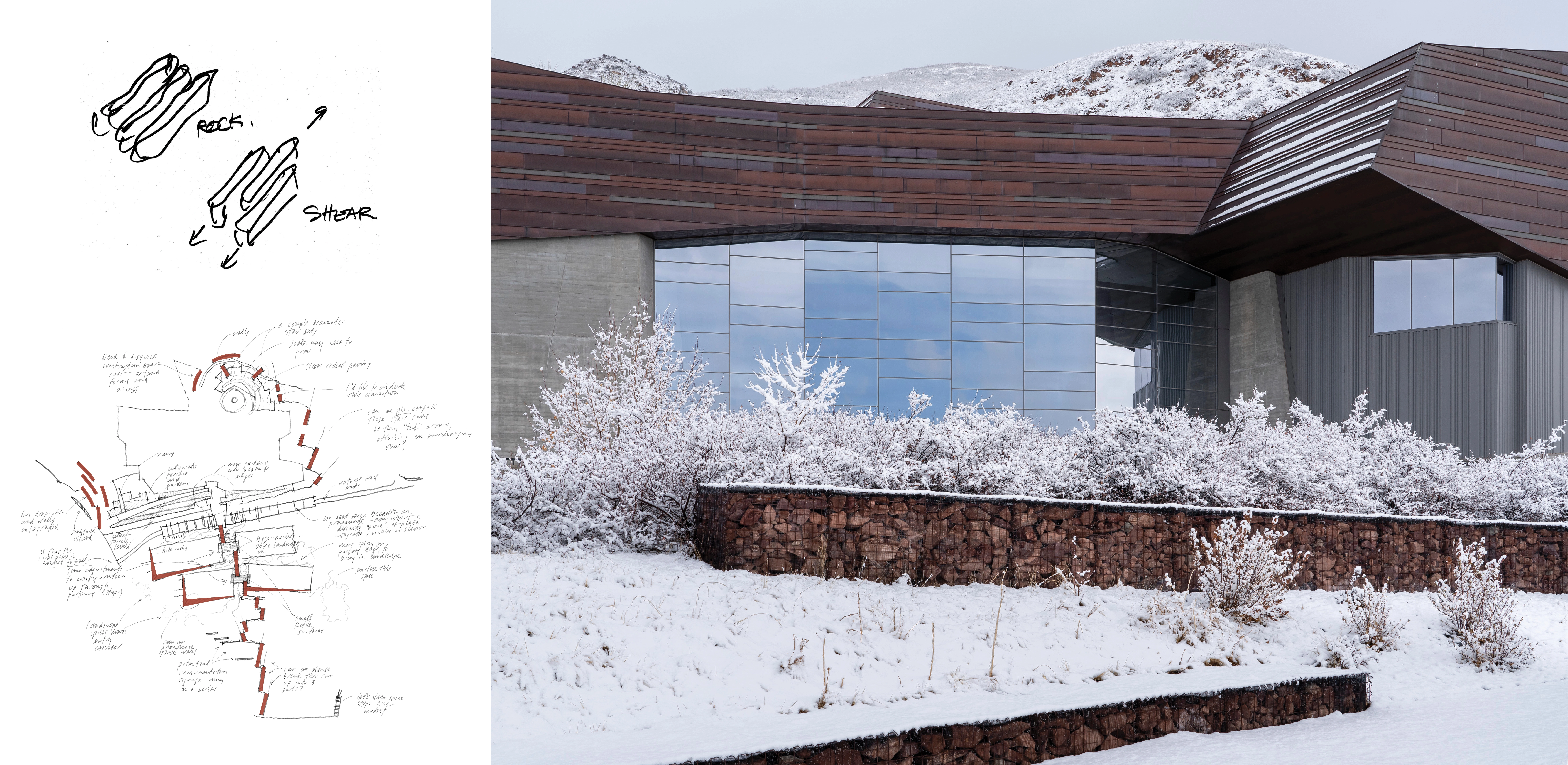 The Natural History Museum of Utah provides an introduction to a remarkable landscape, and celebrates unique paleontological discoveries, unusual gems and minerals, preserved prehistoric artifacts, and stories told by contemporary native people. Bridging of divide of nature and culture, the Museum offers an abstract extension and transformation of the land: its campus an expression of a landscape defined by rock, minerals, and vegetation.