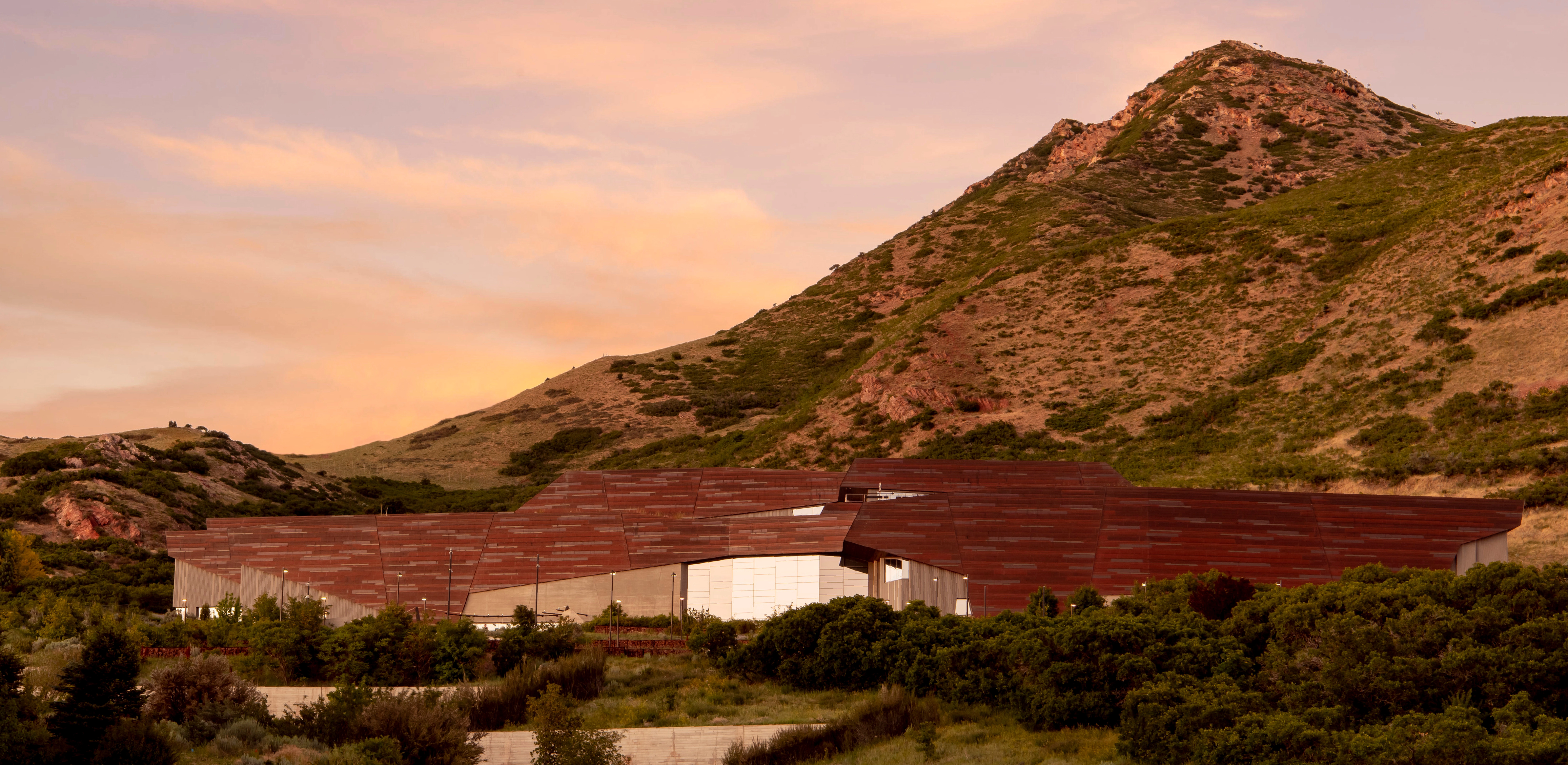 Critical to the institution’s ability to fulfill its mission was the selection of a 17-acre parcel, located in the foothills above Salt Lake City, that offered an appropriate cross-section of geological, ecological, and cultural landscape zones. Here, the Museum would rest along the historic shoreline of Lake Bonneville, an ancient paleolake in the Great Basin of western North America, at the transition between century-old stands of Gambel oak and sagebrush shrubland plant communities, and within the University’s Research Park, adjacent to the Red Butte Garden and Arboretum.