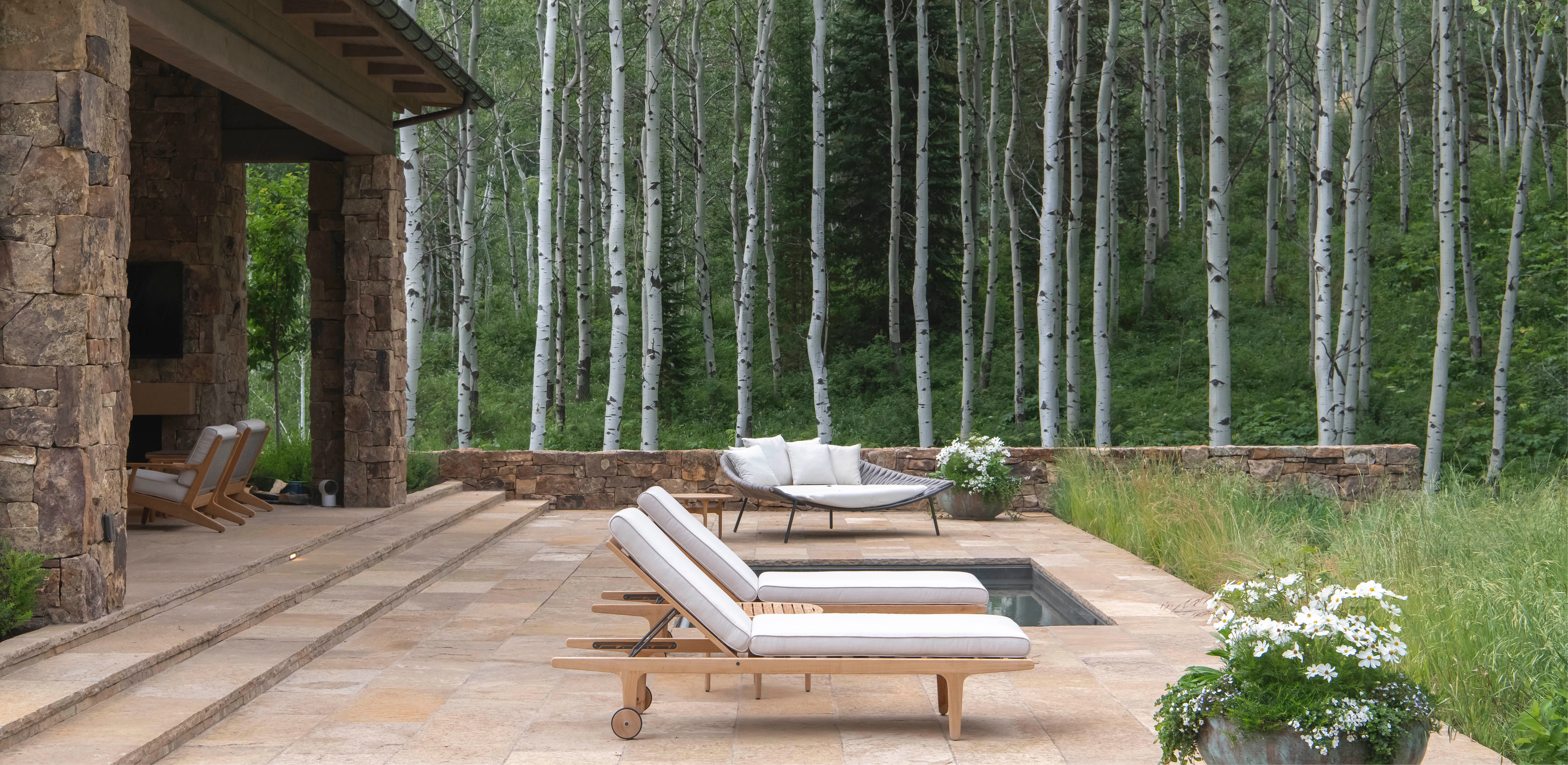Initial design conversations between design team and client revealed a deep appreciation for the cultural integrity inherent in the natural patterns of classic Western compounds. Design explorations focused on synergistic relationships between landscape and architecture, utilizing natural land patterns, spatial connections, and distant views to create a modern interpretation of a traditional Western compound. From the outset, the landscape architect embraced the concept of protecting the immersive experience of the forest setting. As a result, the rhythmic pattern of home and garden within an overarching canopy of aspen forest contributes the greatest value towards achieving the client’s ultimate vision.