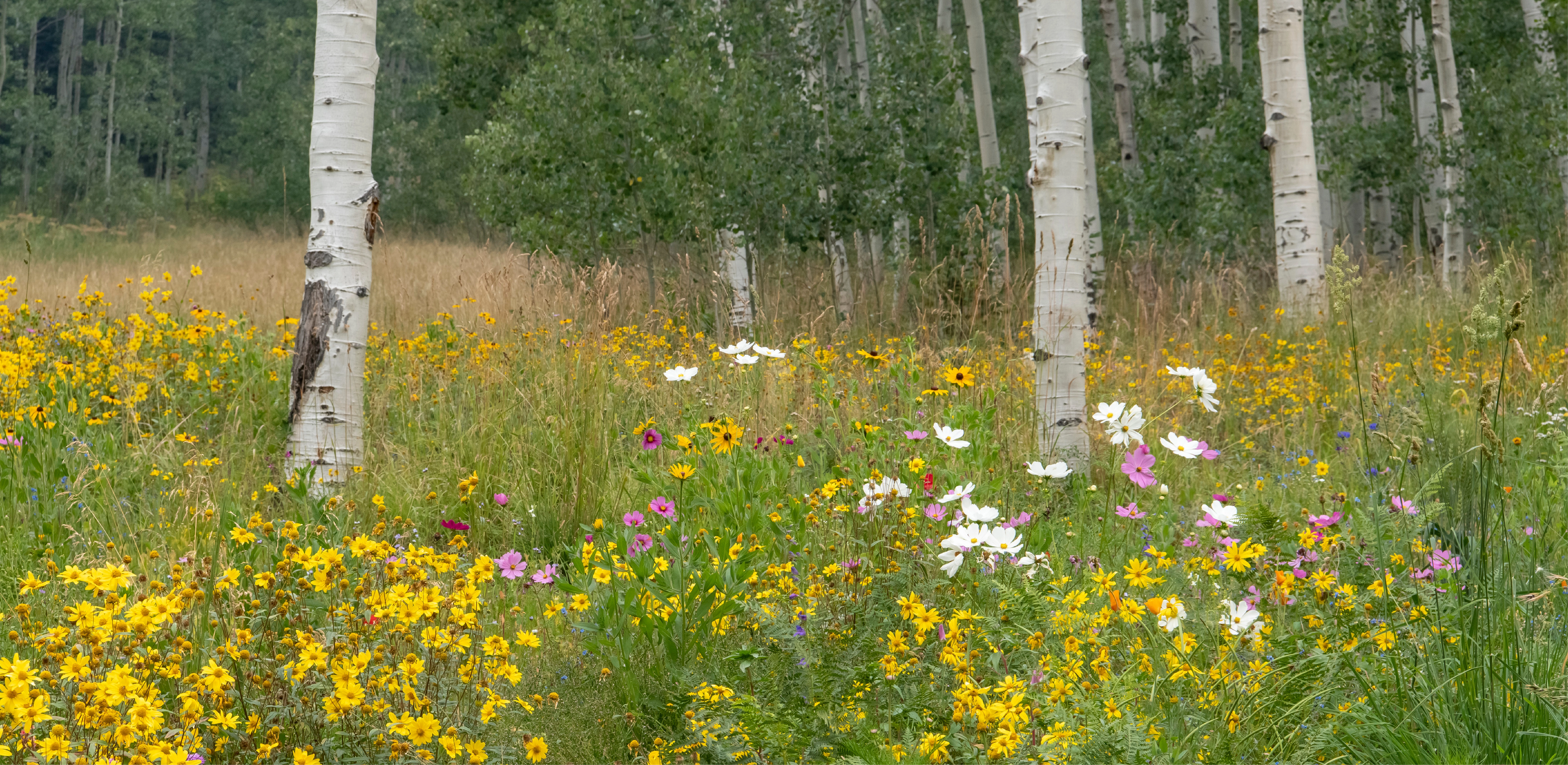 The property lies within the Montane Life Zone, a diverse ecosystem found between 7,000’ and 9,500’. Filtered sunlight, cool temperatures, and steep slopes retain snow from September until late spring. Rich alkaline soil combined with a buildup of leaf litter hold significant moisture throughout the summer, supporting a lush Aspen forest and rich understory of deep organic matter. Ferns, berry-producing shrubs, and a variety of native wildflowers including columbine, lupine, geranium, and valerian provide a veritable banquet for migratory birds and indigenous wildlife.