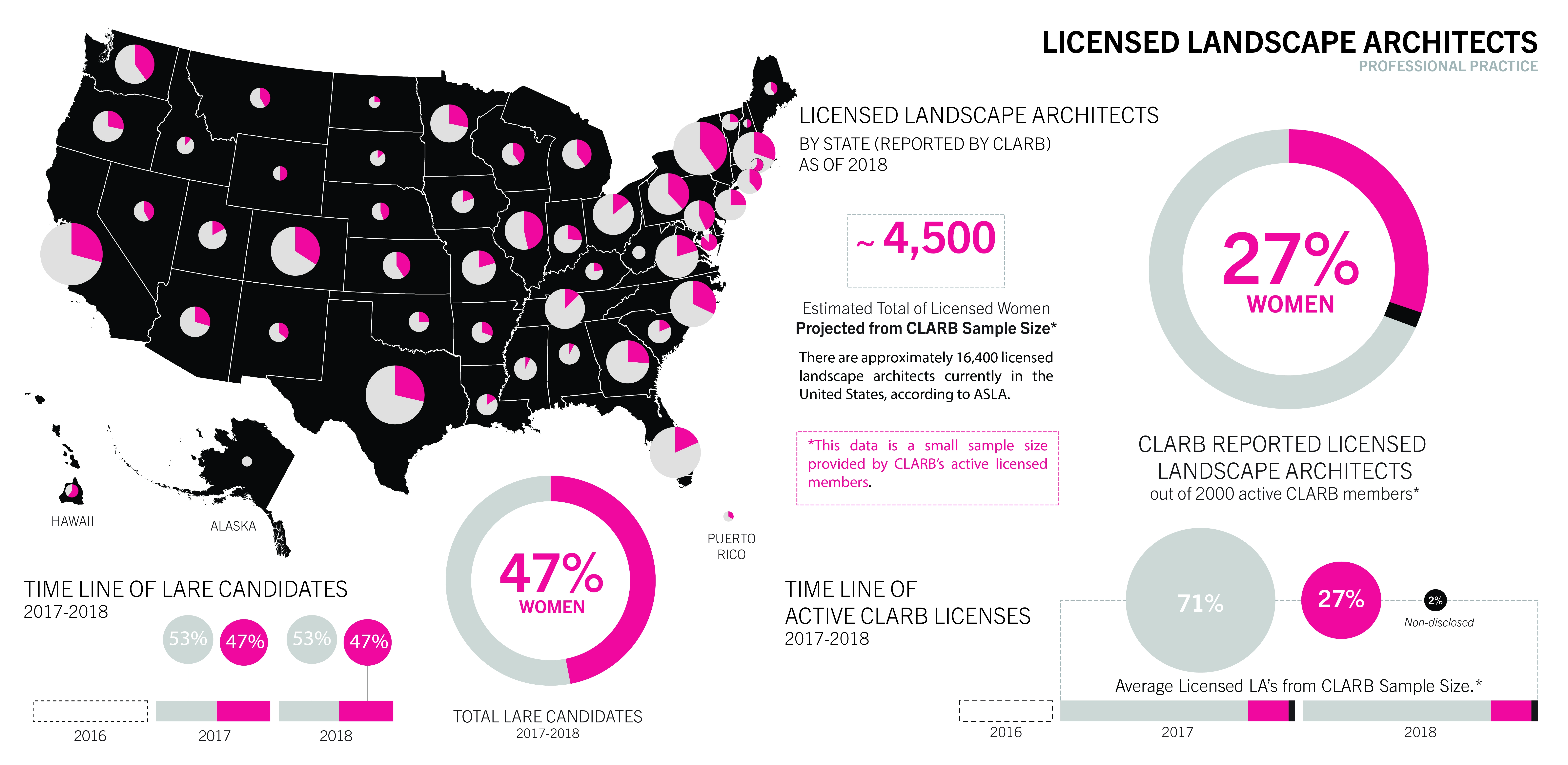 The VELA Project collected 16,000 unique data points collected from ASLA, the Landscape Architecture Foundation Olmsted Scholar Program, CLARB data on active members with a council record, and state ASLA chapter websites.