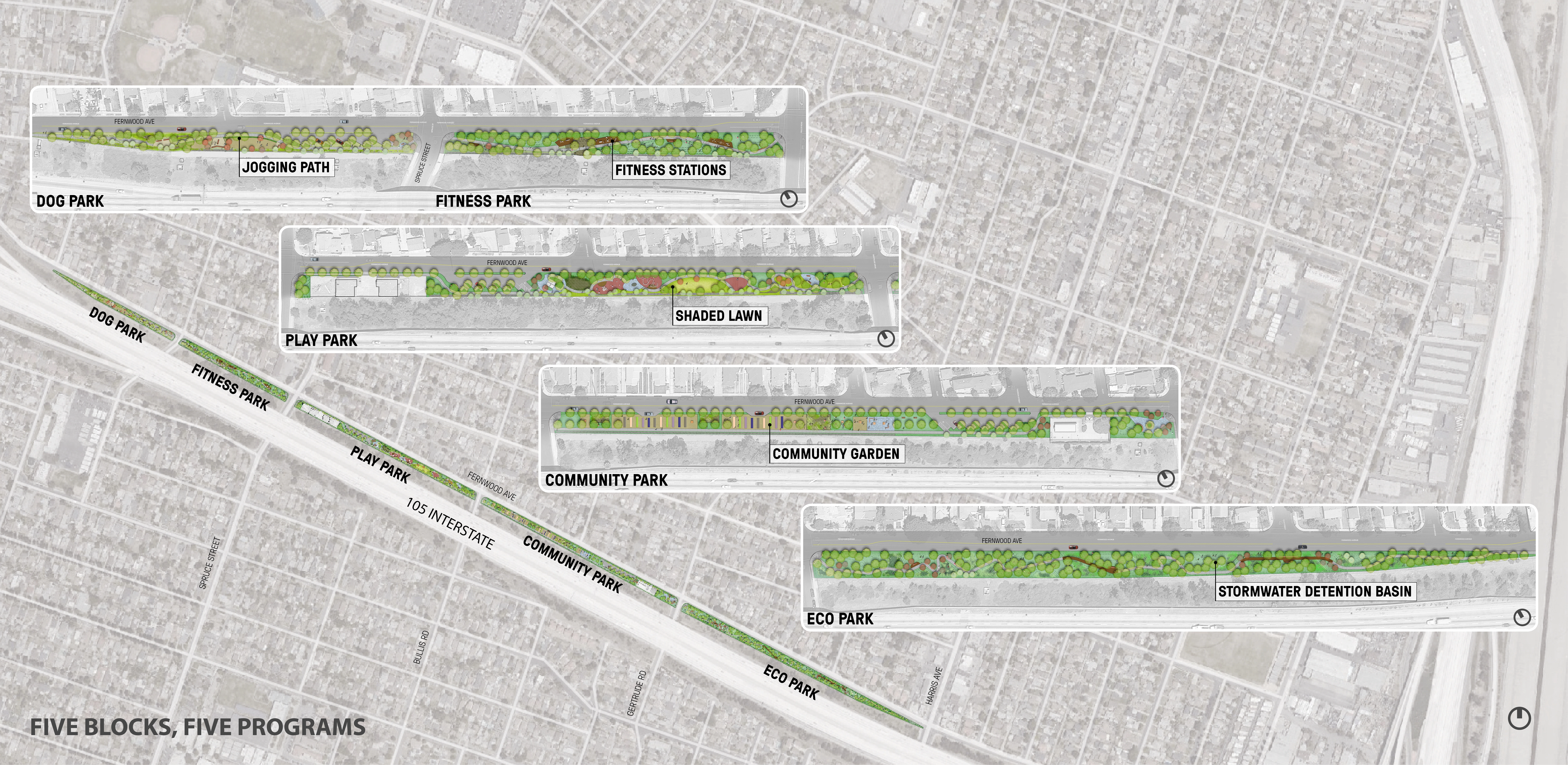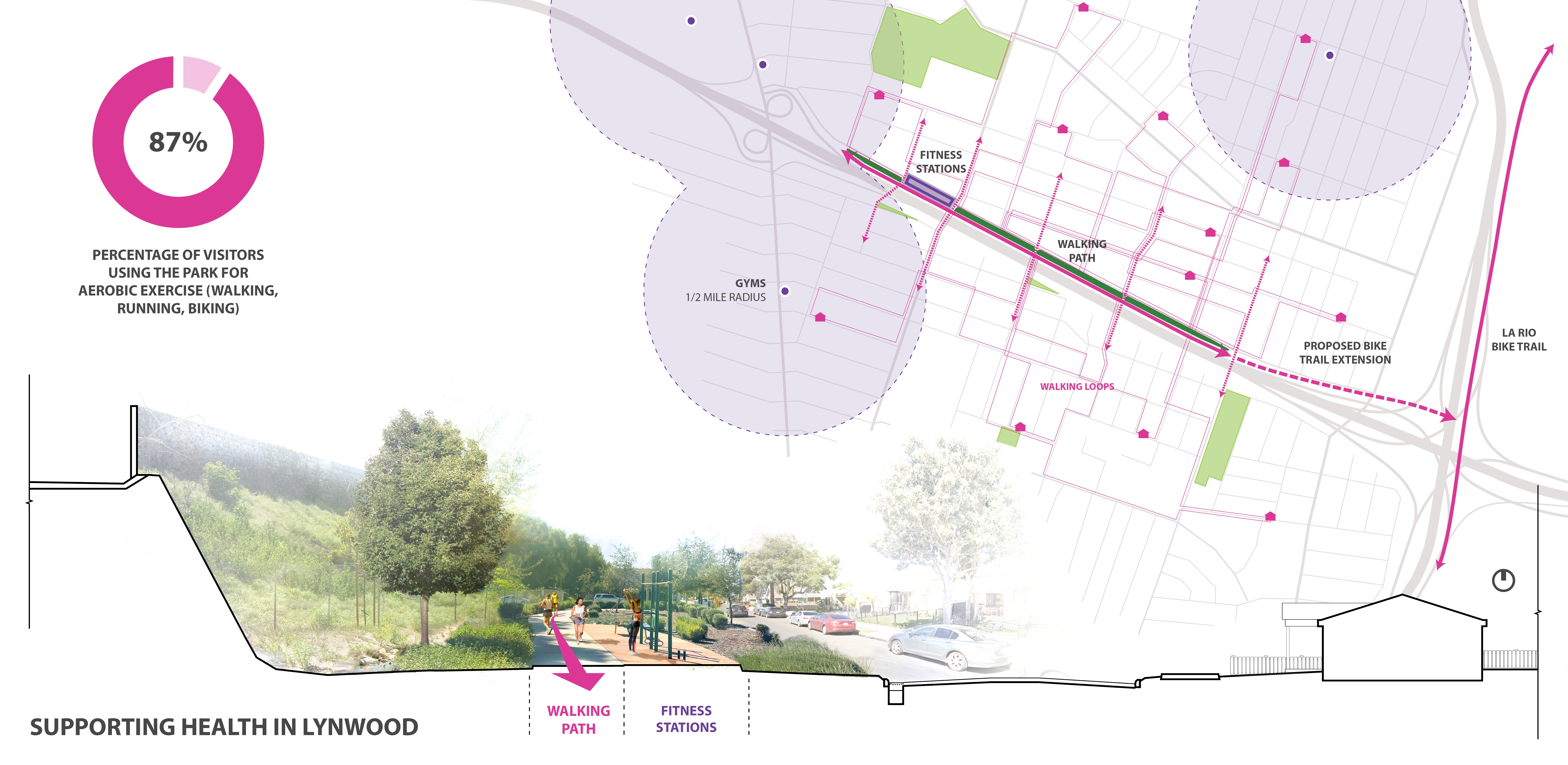 Throughout the past few decades, Lynwood has exemplified the struggles of many urban communities in similar straits. Its more affluent residents, and many businesses, gradually fled the community as the freeway rendered it a less desirable place to live, and its populace shifted, becoming younger, with a middle-class Black and Latino-majority demographic. In 2014, the City of Lynwood moved to reclaim a one-mile section of unutilized freeway-adjacent right of way as a much-needed gathering place and community resource.