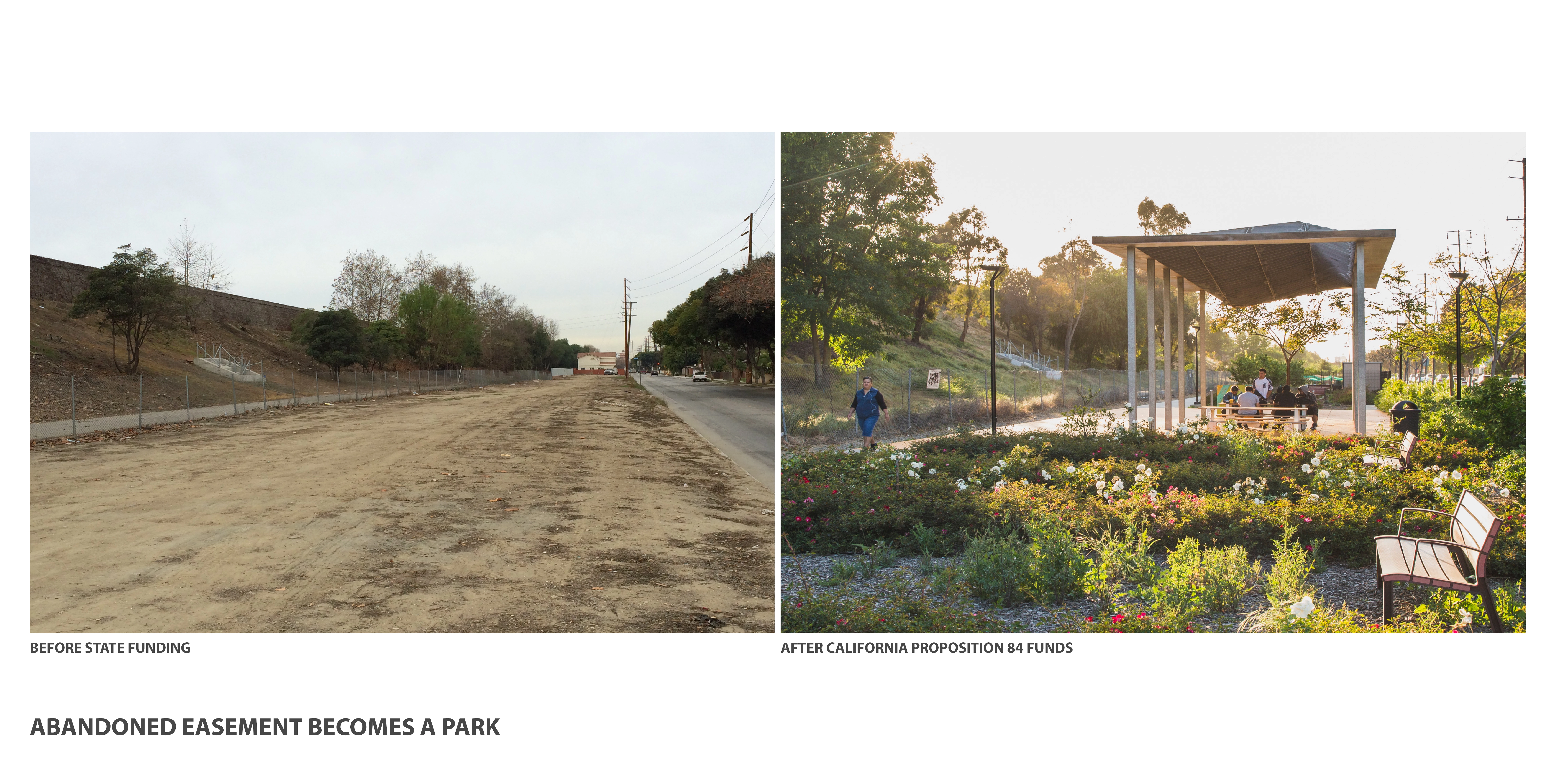 In Los Angeles County, where park availability and access are infamously low; and where the legacies of redlining and urban renewal remain painfully present, the Ricardo Lara Linear Park proves that underutilized land can be meaningfully repurposed to reflect the aspirations of a vibrant, but historically disenfranchised community. Today, the park is host to flourishing food gardens and laughing children, and the very infrastructure that has long divided and isolated the surrounding community has become an amenity that unites it. -
