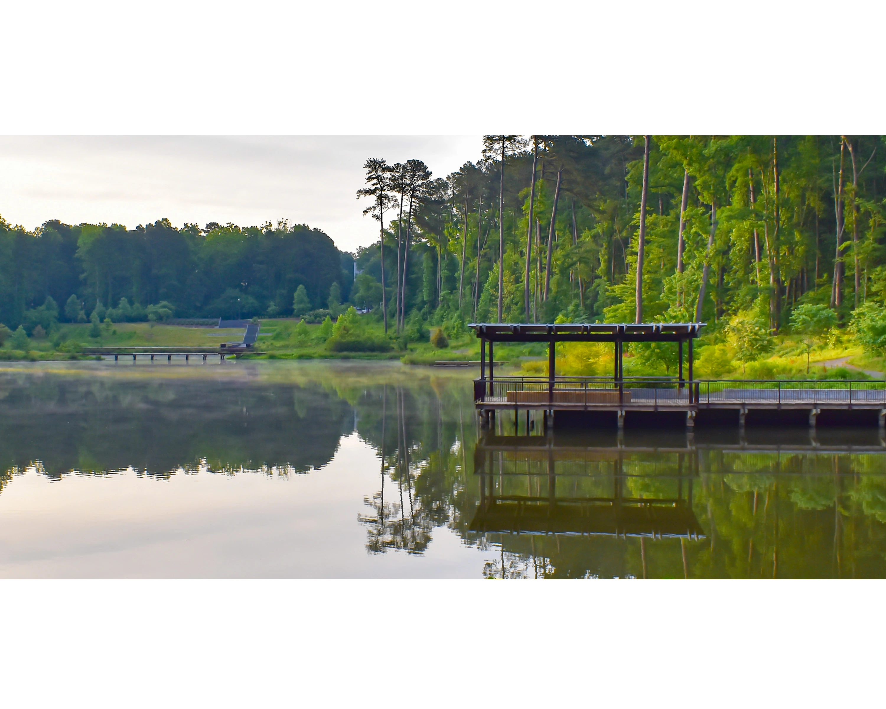 The original master plan for Duke University was designed by the Olmsted Brothers firm in the 1920s. The firm fulfilled the client’s vision for a picturesque campus landscape that would sit within 5,000 acres of remnant forest land in the rolling hills of the Piedmont region. Two lakes were planned in the lowlands on either side of the ridge upon which the iconic Duke Chapel was built. Due to financial constraints, neither lake was built with the construction of the university. Subsequently, one of these lakes was built as a stormwater pond in the Sarah P. Duke Gardens in the 1980s. Now, with the completion of this project, the realization of the second lake fulfills the original Olmsted vision for the campus. -