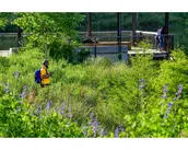 The pond now supplies more than 100 million gallons of non-potable water per year, supporting the chilled water plant, the university’s largest water user, to cool the campus. Capturing stormwater runoff from 265 acres containing the densest and most urban portion of campus, the pond effectively cleans this contaminated stormwater before slowly releasing it downstream into one of America’s most endangered rivers. The design team created a lush, vegetated edge with diverse trees and shrubs, and worked closely with faculty from Duke’s Nicholas School of Environment to develop a palette of native plantings that supports the school’s focus and helps to create an outdoor classroom for undergraduate students and graduate researchers. Over 40 herbaceous native plant species (emergent, wetland, and upland) respond to fluctuations in the water level depending on rainfall and campus demand. These plants are able to tolerate both hot, dry summers and soaking wet conditions. With the creation of new wildlife habitat, the site has become a model for biodiversity and supports numerous species of birds, insects, fish, and mammals.