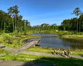 The landscape architect designed the landscape to connect to the campus community in ways that maximize its potential use as both a recreational and educational amenity. A major path through the site facilitates a strong connection to the heart of the campus for cyclists and pedestrians. The pavilion, boardwalk, nearly mile of paths, an amphitheater with lawn seating, overlook, and bridge provide diverse opportunities to interact with the pond and landscape. The site has become a place of respite for students, faculty, and staff who use the pond to study or have a quiet moment outside. The Nichols School of the Environment monitors the functionality of the pond - which has revealed a 50% reduction in phosphorus and nitrogen in the water - and faculty and students are already using it for ongoing research projects. Durham school groups of various ages use the pond to learn about environmental stewardship. The pond has also become a frequently used model of multifunctional infrastructure by engineers and designers from other municipalities and universities.