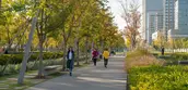 Diverse programs are organized in various park spaces, accessible to all and primarily free of charge. Active lifestyles are nurtured in multiple forms of runways and the multipurpose lawn with a capacity for 3,500person events or five simultaneous five-on-five soccer games. Cultural events and performances for audiences up to 900 people are accommodated in the sunken garden, and various restaurants and public service facilities scattered throughout the park provide intimate spaces for smaller social gatherings like office parties and family reunions. Private conversations and reflection take place in the park’s multiple gardens, riverfront overlooks, and the birdwatching grove, offering a respite from busy urban life. The entire park is universally accessible, providing equal opportunities for people at the full range of ability levels. The park serves as a year-round outdoor destination for nearby residents, office workers, families, and students.