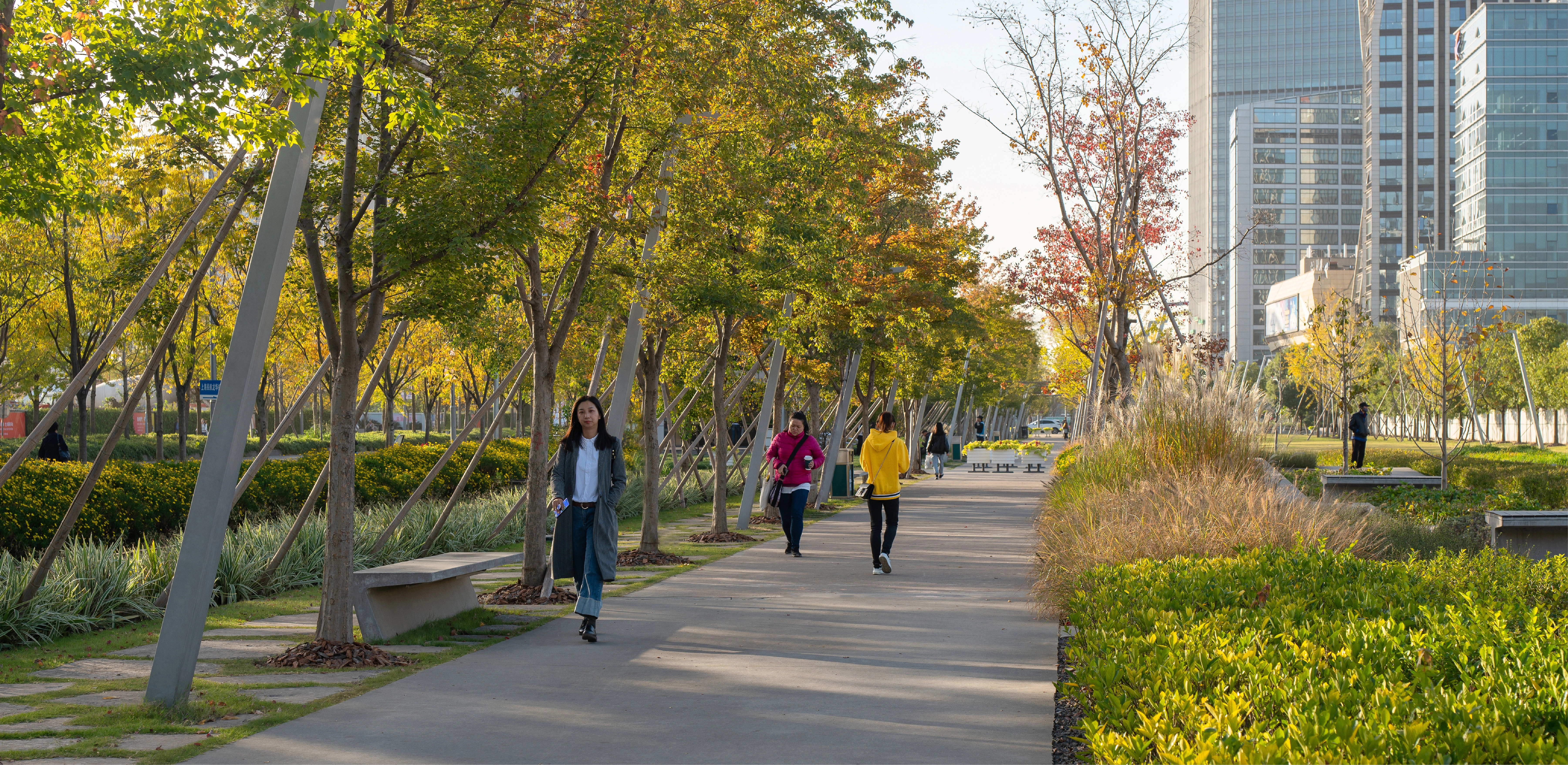 With the 21st century repositioning of the Xuhui Riverfront area as a contemporary mixed-use district, the historic runway is embracing its new life. Master planned as a side-by-side public street and linear park, the park provides a valuable open space corridor that serves the district’s high-density developments and offers a much needed recreational space for adjacent neighborhoods.