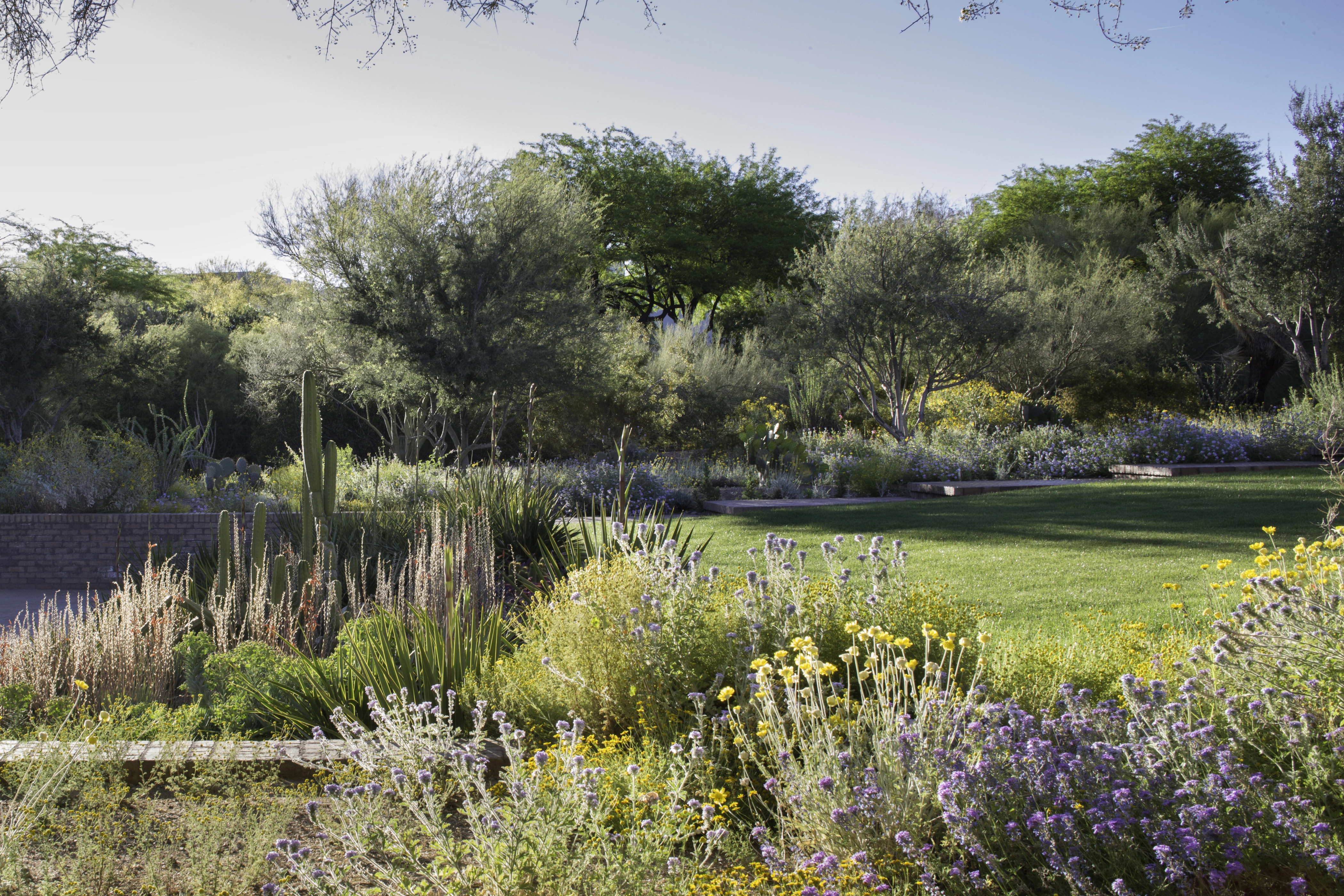 In the arid climate of Arizona, beside Camelback Mountain, a 2.5-acre Paradise Valley residence replaces water-intensive turf groundcover with a more sustainable plant palette of native cacti, grasses, and wildflowers. Designed as a series of terraces, the landscape unwinds down the site’s 37-foot drop in elevation as a series of distinct garden galleries, culminating in a rainwater catchment cistern that irrigates the small remaining turf parcel. Here, the landscape architect aimed to set new precedents that balance client desire with xeric landscapes to promote more sustainable practices in the Sonoran Desert and beyond.