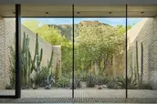 The firm's experiential approach to design, procurement and placement culminated in a judicious balance of intervention and restoration, of reshaped space, redirected views and ultimately an abundant interplay between flora, light and shadow. As a result, the site was transformed into a spectacular celebration of awe-inspiring desert plant life. Each garden gallery emanates a distinct landscape essence; every window looking out presents a new focal point - a sculptural Queen of the Night, the twisted form of an Ironwood tree, a field of colorful shades of blue and aqua succulents and white glowing cactus or the rich texture of house walls contrasted with sculptural cacti. Individually, the diverse gardens encase a rich interplay of like or complimentary plant species from arid regions around the world; collectively, the gardens provide a year-round show of marvel cascading through the landscape.