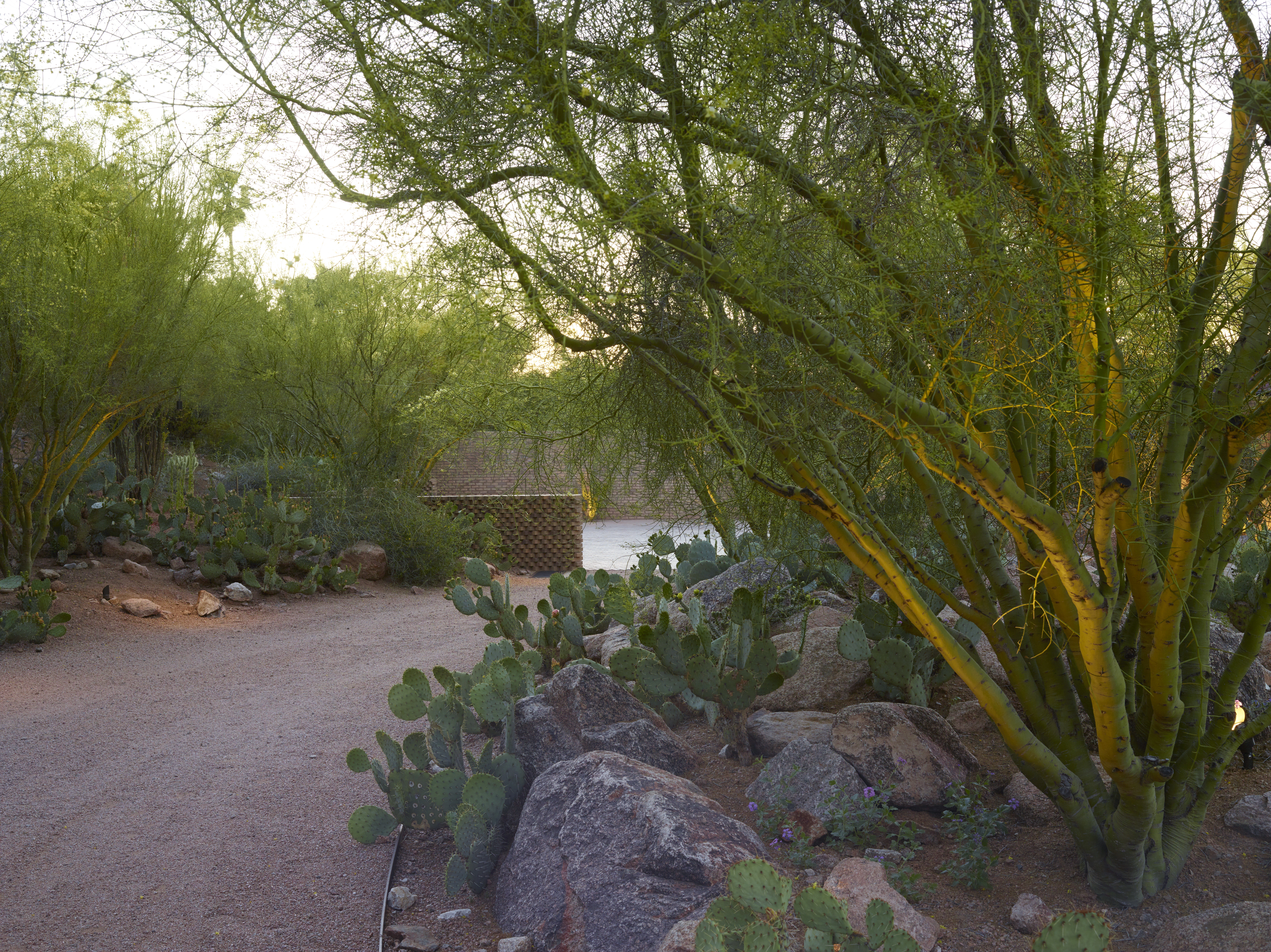 • Permeable surfaces at the driveway, entry auto court and garden paths, reducing the heat island affect plaguing the Phoenix metro-valley