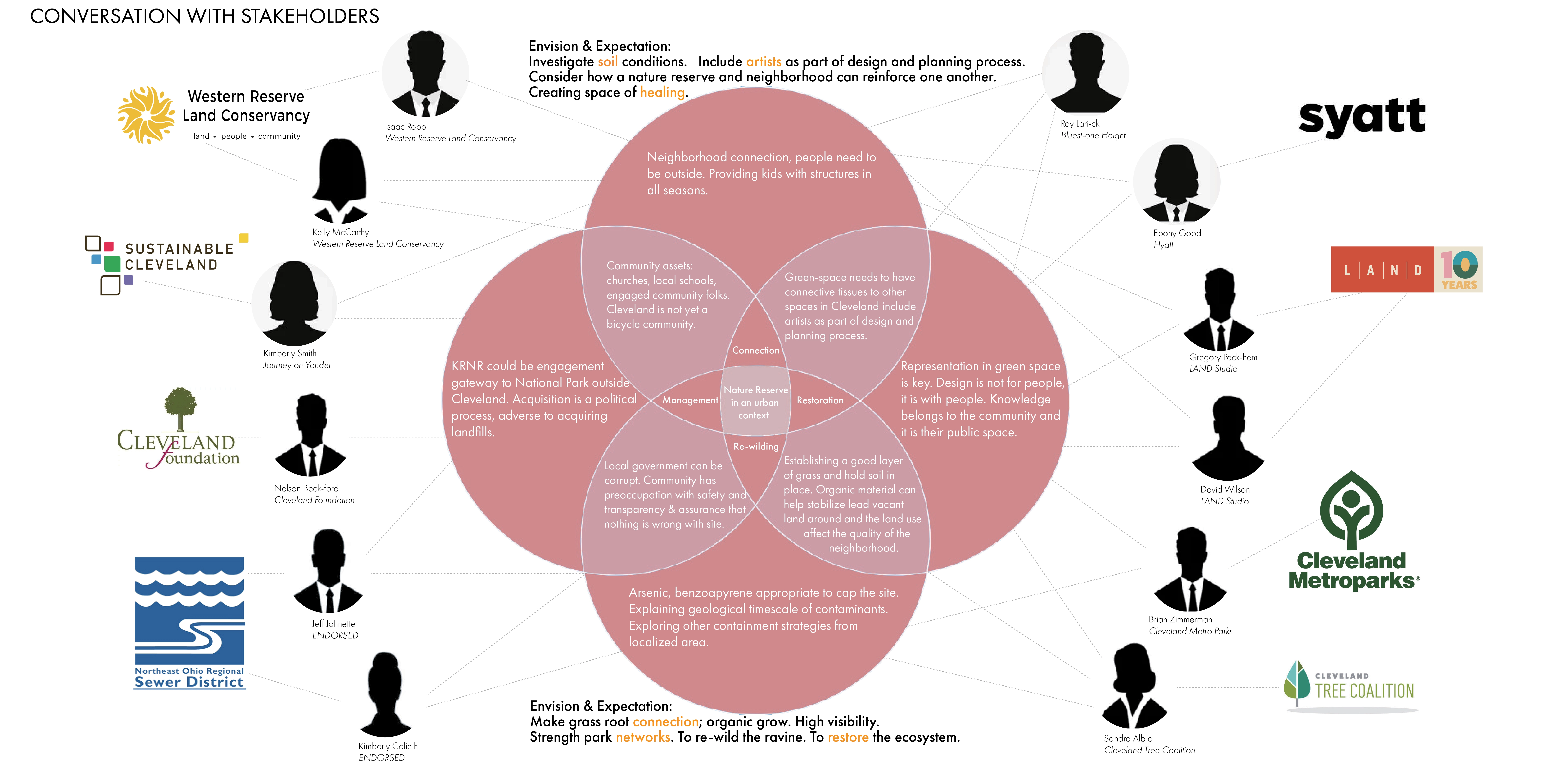 Kingsbury Run Nature Reserve: Collective Re-imagination as an analysis, research and community engagement intensive envisioning project combines the different qualities of the site and the people to suggest a vastly dynamic possibility that promotes local sustainability, resiliency, diversity and last but not least, social equity. It is a project that imagines with the people.