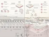 This project revives the old Mississippi River barge system to revitalize America’s great river, tapping into a ubiquitous, historical object to address the economic and ecological future of a region. There have been many studies of the river that we’ve seen before, but none in this type of detail. The proposal is intriguing and ecological, portraying innovation and smart analysis.