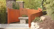 Memorialization is also a significant goal and the garden is, in part conceived as a memorial to Cass Turnbull, founder, and director of Plant Amnesty, a local non-profit horticultural education and advocacy organization. Turnbull, a former Parks and Recreation employee, devoted her life to teaching clients, city officials, and the public about the importance of preserving and fostering the health of urban tree canopy through proper pruning and maintenance techniques. After passing away three years ago, we worked with Plant Amnesty on a garden space that would celebrate her and her lasting influence on Seattle’s landscape architecture and horticultural communities. The first of three gathering areas within the garden is dedicated to her and intentionally designed to reflect her quirky sensibility and personality. One such element is a flower-like sculpture crafted from defunct gardening tools from a bygone era. These leftover tools also serve as distinctive decorative elements to the nearby guard rail that frames the overlook in this section of the garden while also expressing her love of gardening. A third memory thread woven into the garden is articulated in another gathering space dedicated to Kay Bullitt, the current owner of the property. This space celebrates her life’s work as an advocate for women’s advancement and promoter of equal rights and social justice. The semi-circular gabion benches, reminiscent of gathering places of exchange found in Quaker meeting houses, direct the user’s focus onto a central stone feature with carved quotes from Elenore Roosevelt and Professor Cornel West expressing Kay’s values and life goals.