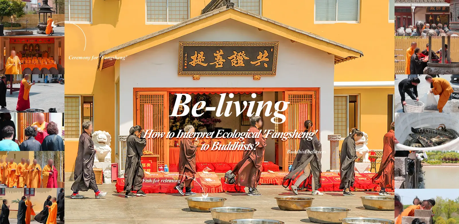 The 'Be-Living' Project is a series of promotional materials for Buddhist believers to provide scientific guidance on 'Fangsheng' activity, a popular Buddhist ritual in which captive creatures are freed to demonstrate compassion and earn merit. However, thousands of 'Fangsheng' activities occur annually without guidance, causing the low survival rate of released animals and follow-up ecological issues. As landscape architects, we hope to play not just the role of designers or educators but also an interpreter. We coped with ecological problems while understanding the religious doctrines. Through the design and production of 'Fangsheng' monthly calendar, weekly calendar, and guide book, we promote the activity of "Fangsheng" (animal releasing) with religious characteristics to be carried out in an eco-friendly way, which ensures the achievement of Buddhist original intention of releasing activities and the sustainable development of ecological environment.