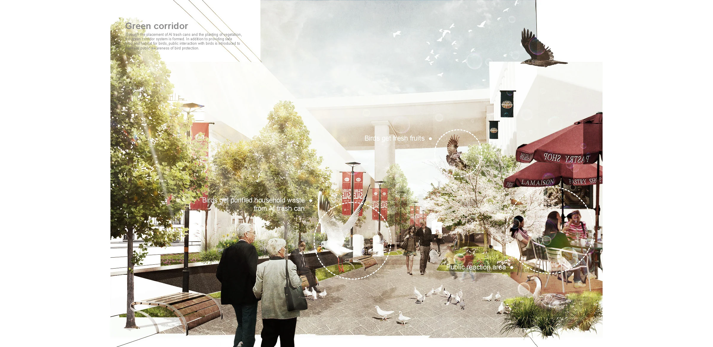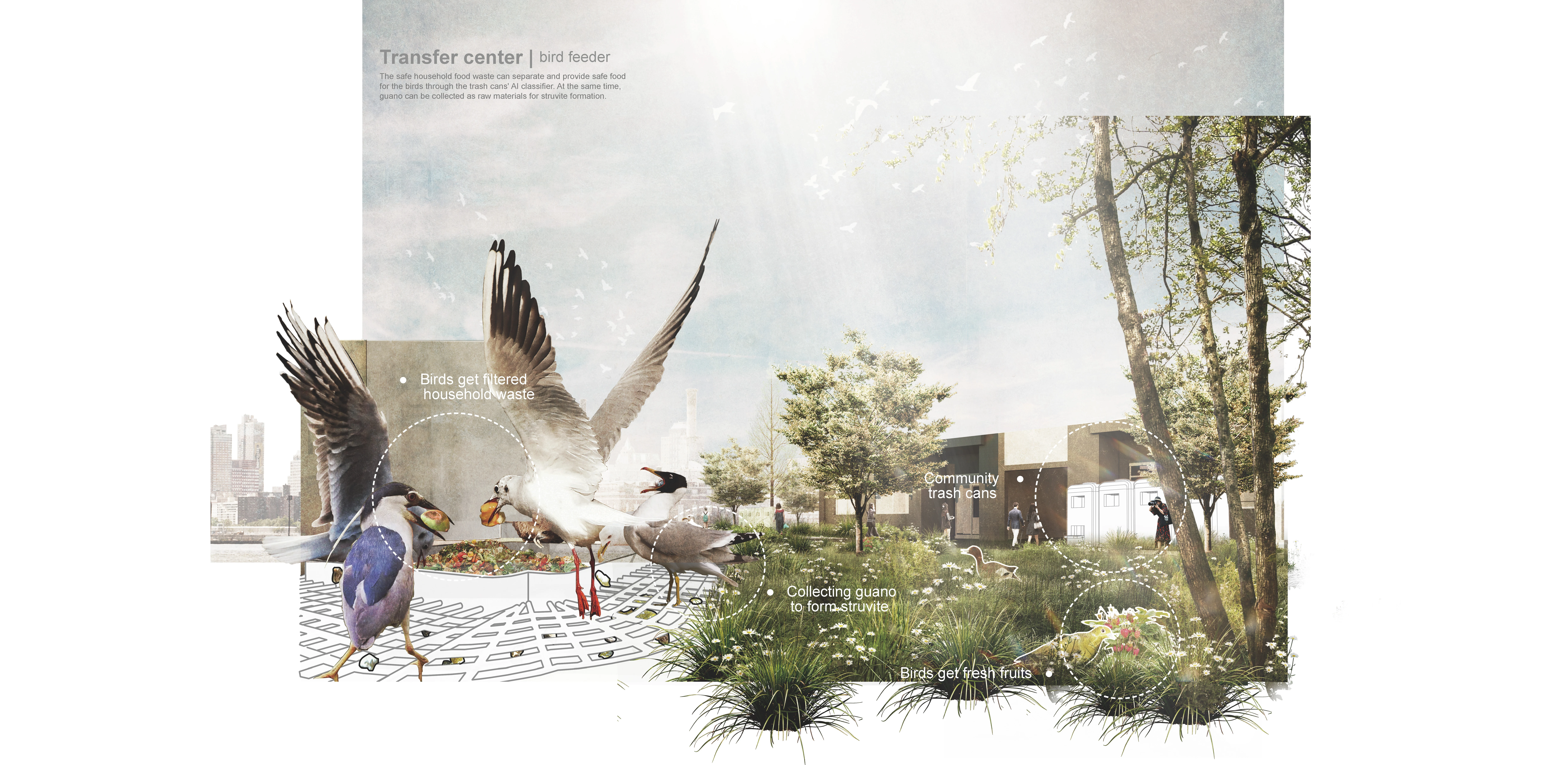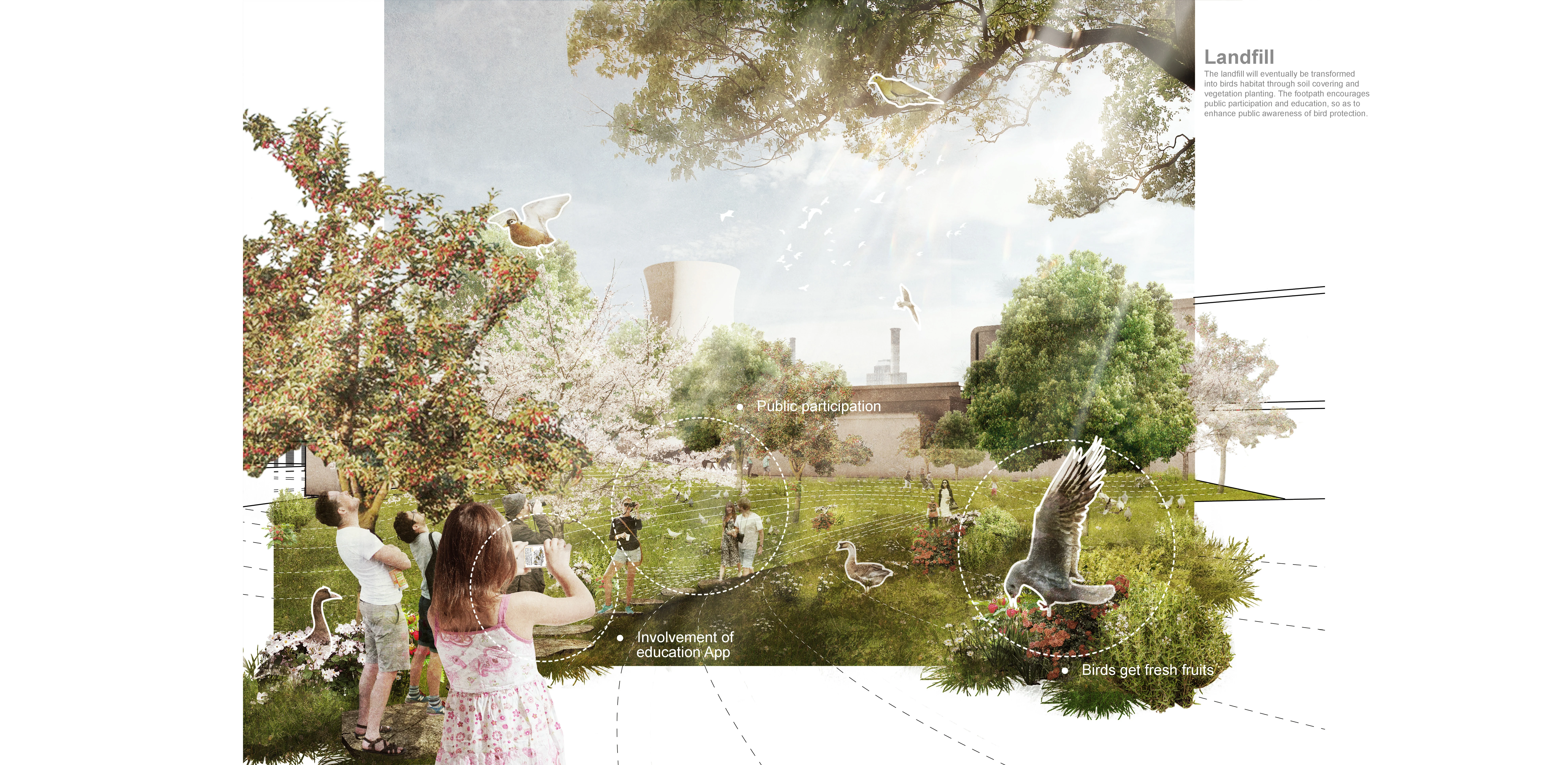 We try to figure out a possible way to give birds a chance to eat safe and healthy garbage, while contributing to human society in this process to make a sustainable cycle through landscape planning and design.