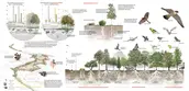 Initiate climate-adapted plant species for phytoremediation to let nature to treat the contaminants from the industrial past. Densify existing tree layer to build multiple clusters of forest for an airborne dust buffer and sequester carbon. Restore and re-establish vegetation blankets through public participation. Develop a public engagement program to welcome people from different neighborhoods to contribute to the growth of the park forest as well as the growth of the city forest.