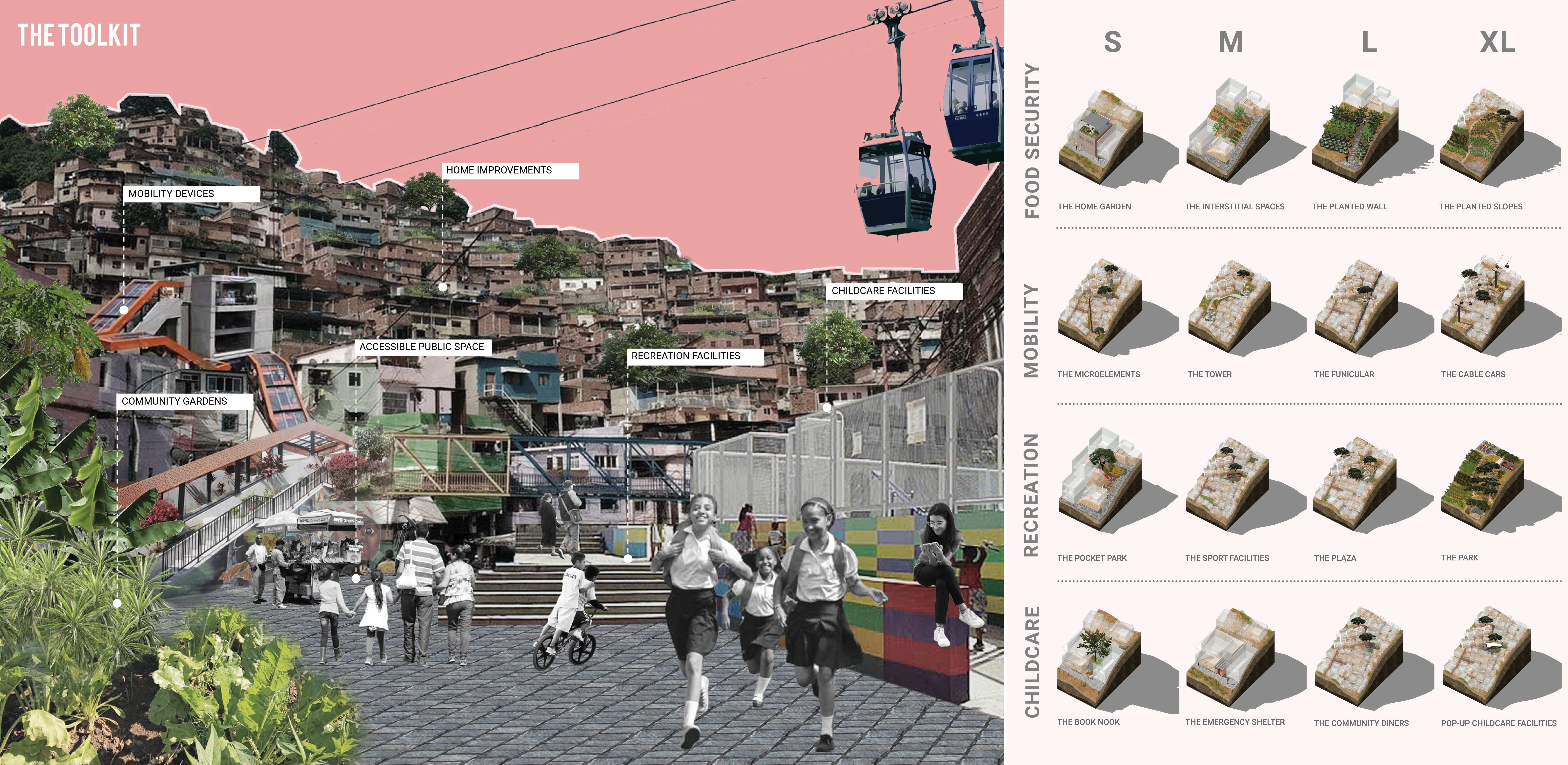 This toolkit clearly hits the criteria of addressing social issues in Caracas, Venezuela, which is important for not only the project but also this category. The way that the team harnessed the existing forces within settlement communities was very compelling, and their ideas are well-integrated within that framework. We also enjoyed the patterns on the proposal which feels very Venezuelan, very culturally and socially grounded.
