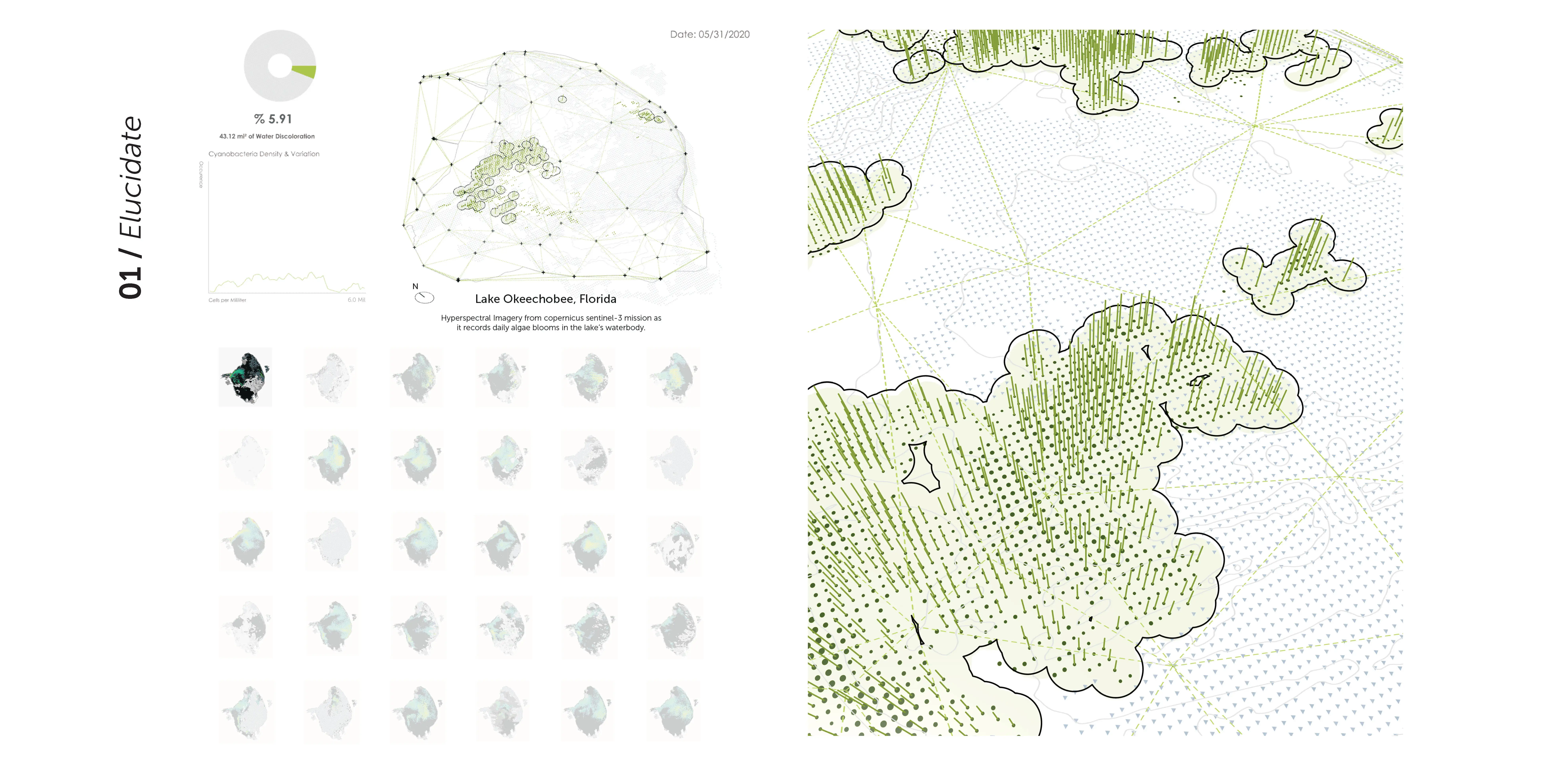 There is a long history and dense library of tools, instruments, and representational approaches to realizing and grappling with the complexities of the natural systems around us. (Anderson and Ortega, 2016) Today, with increased access to computational tools, like algorithmic aided modeling and artificial intelligence, the field of landscape architecture sees increased opportunities to weave environmental modeling tools and live data streams into the design process via responsive modeling. (Cantrell et al., 2017) Algae as Agents exemplifies how landscape architects may engage more complex landscape management issues through the responsive model approach.