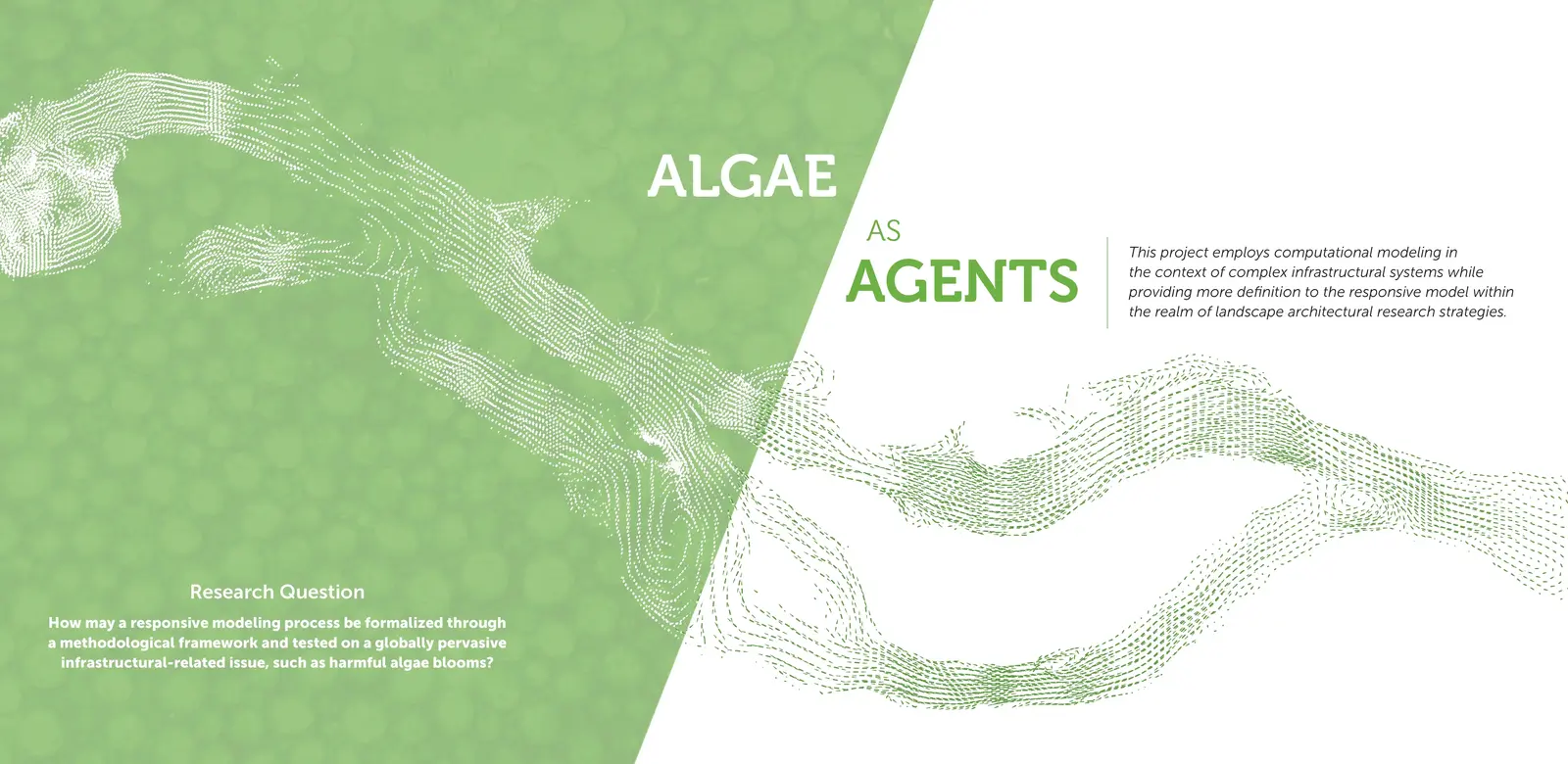 Healthy waterways and integrated water management systems are essential for a resilient future. Unfortunately, with a growing worldwide population, our waterways have seen rapid urbanization and subsequent anthropogenic impacts, including ecosystem degradation, over-extraction, and nutrient loading from various land uses. In places like the Everglades, where historical ecosystems and hydrological processes have become severed, we see how land use, habitat fragmentation, development, and coastal modification result in ecological devastation. As a means of understanding this landscape phenomenon, responsive modeling establishes a place to concurrently hinge between generating and testing hypotheses while incorporating the expanding agency of computational modeling and live data streams. Inspired by the ideas of process discourse, this project investigates the harmful recurrence of algae blooms in South Florida waterways through responsive modeling. Algae as Agents aims to define the responsive model as a research method via case study investigation and analysis; subsequently, responsive modeling practices and concepts have the potential to be translated from these case studies into the context of South Florida via projective research-through-design methodologies.